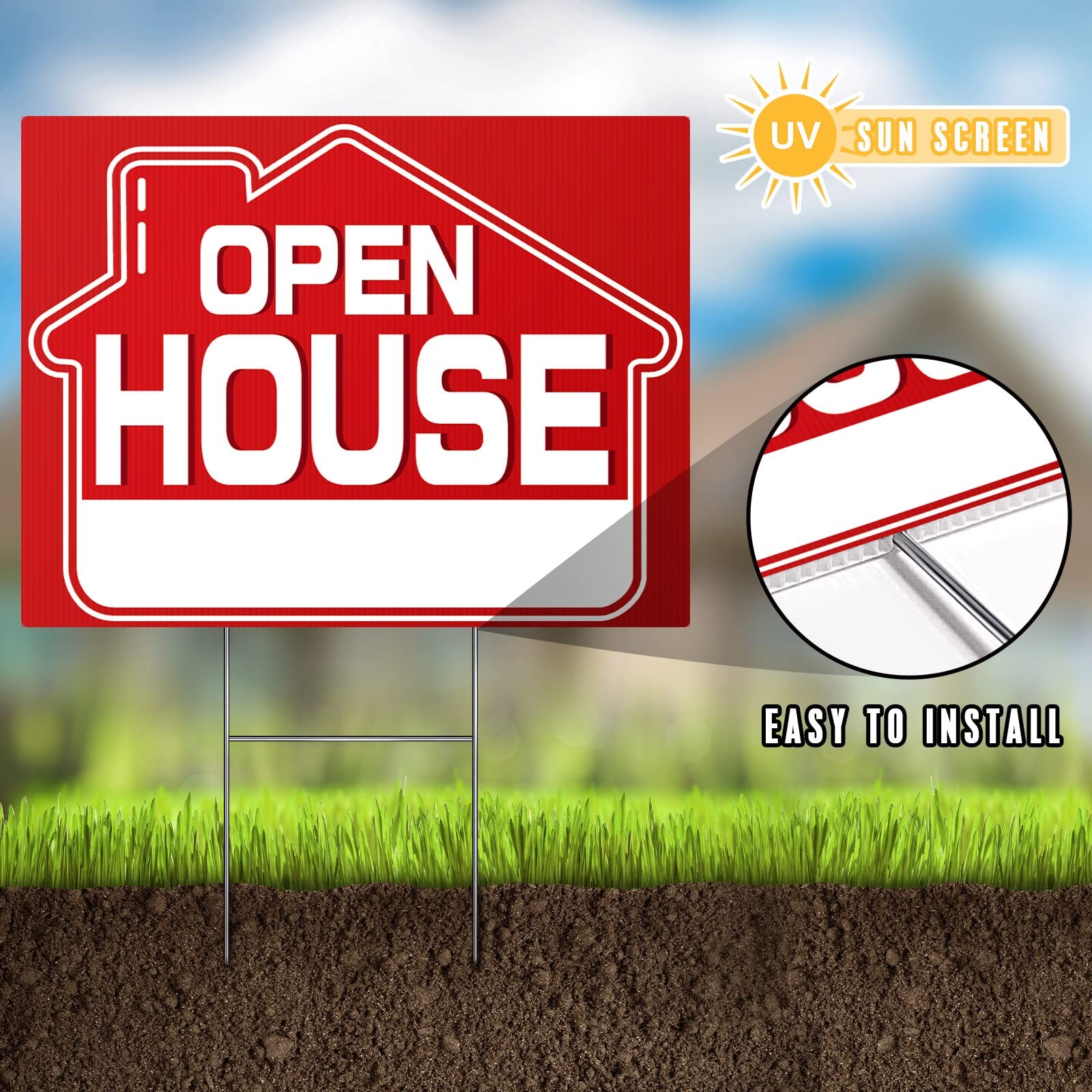Open House Signs 5 Pack , 16 x 12 Double-Sided Yard Sign With Metal H Stak...