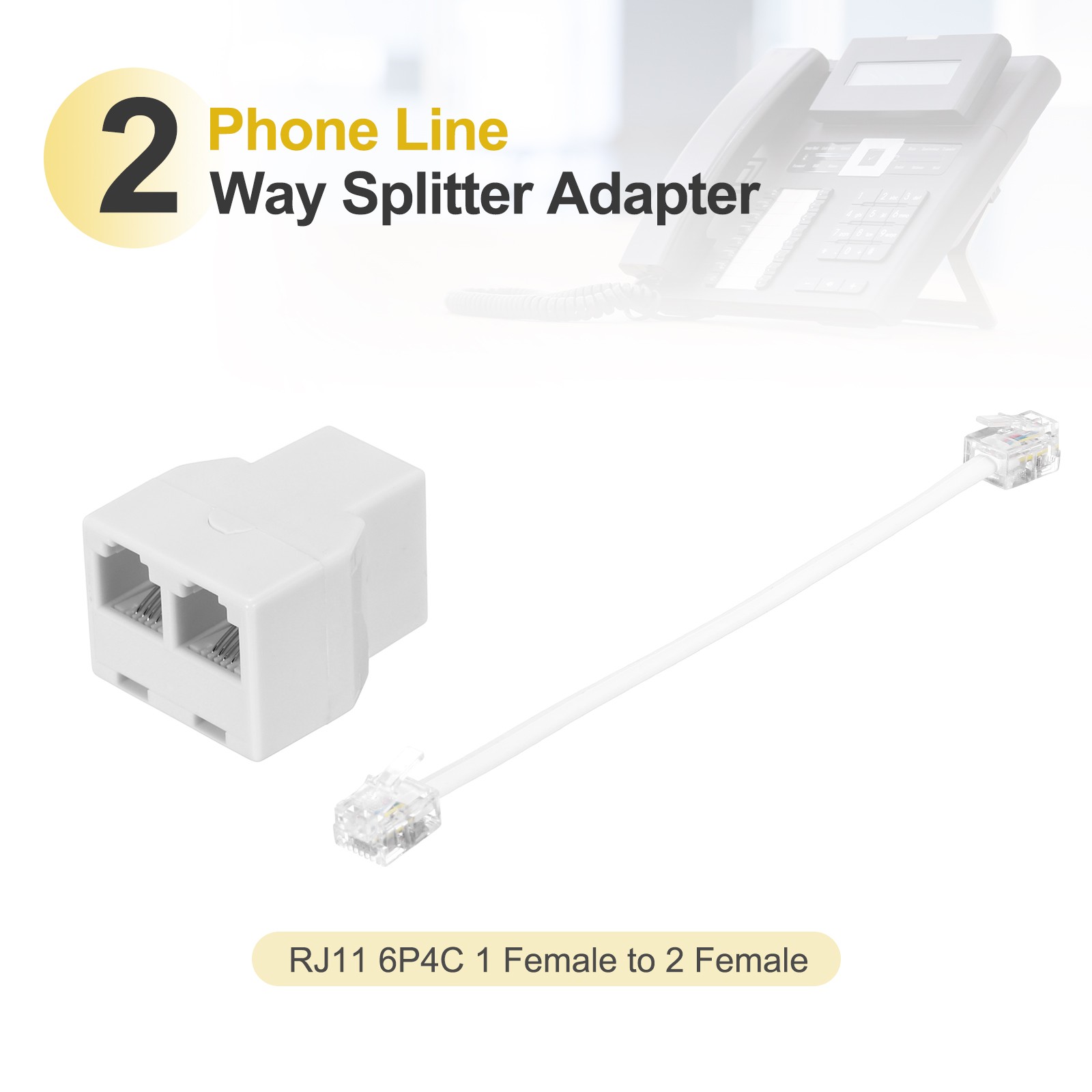 2 Pack Phone Jack Splitter, RJ11 6P4C Telephone Line 2 Way Splitter 0.55ft White
