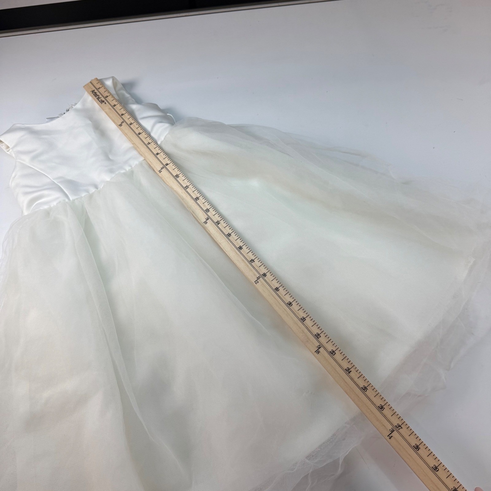 David's Bridal Toddler Ivory Flower Girl Dress 2T Satin Tulle Formal Wedding