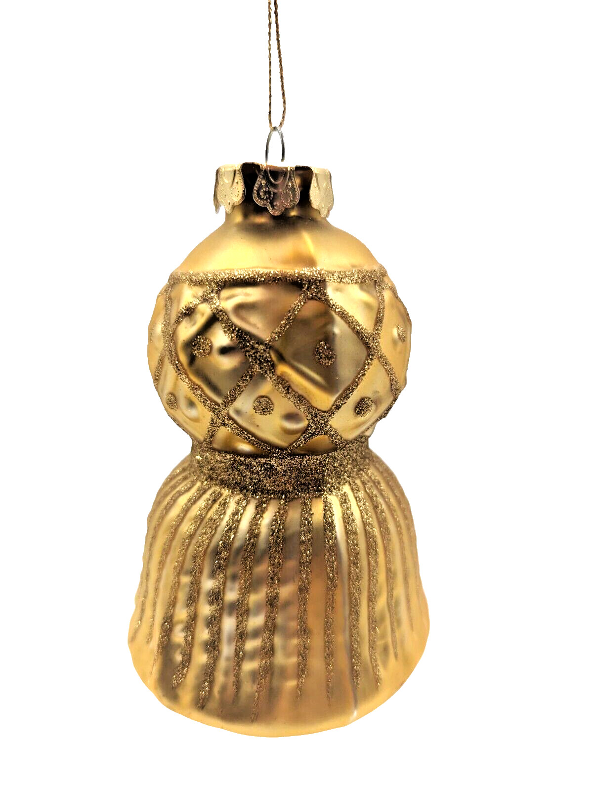 • Gold Glitter Christmas Ornament Blown Glass 5 inch