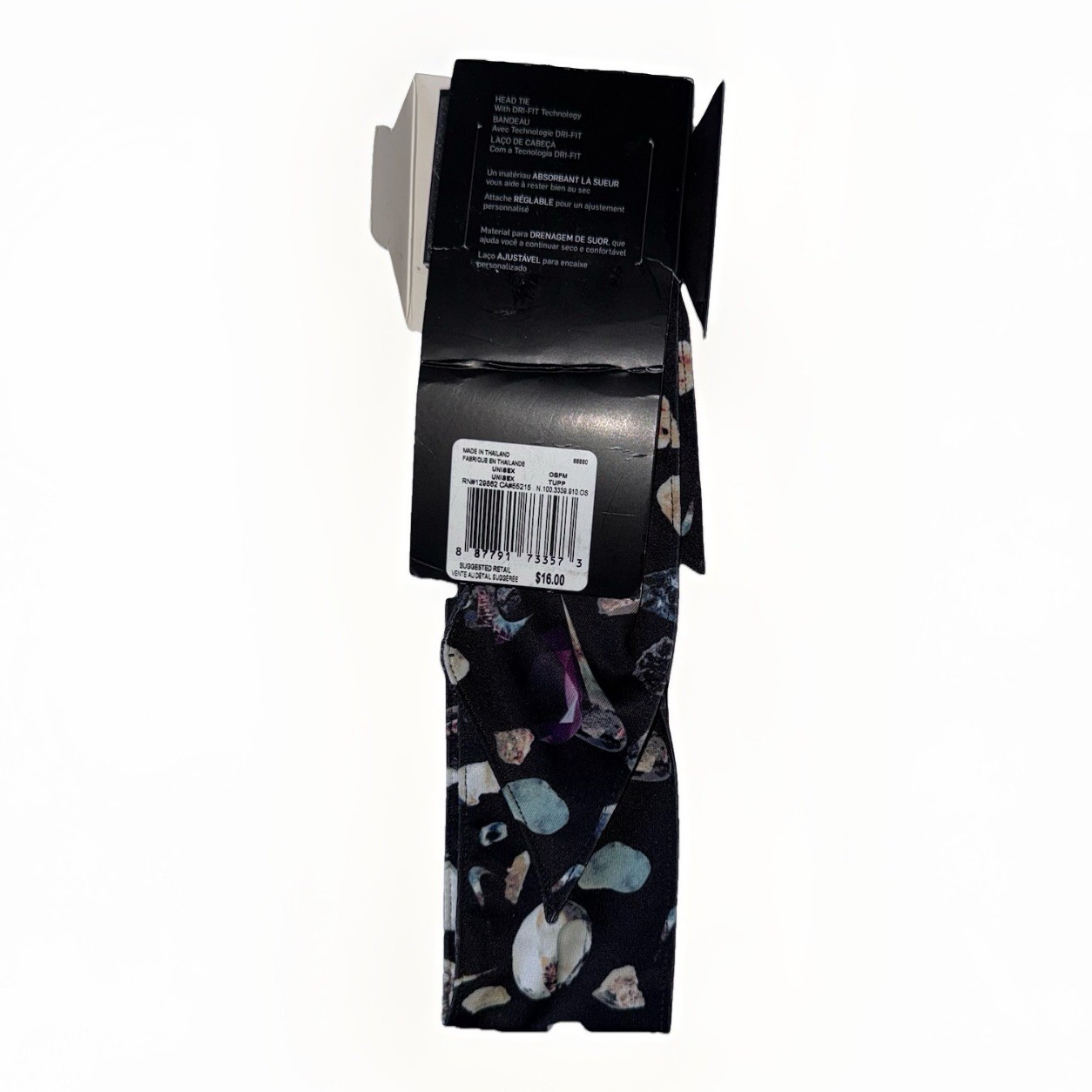 NWT Nike Dri-FIT Head Tie Bandana Headband Black Print Adjustable Gemstones