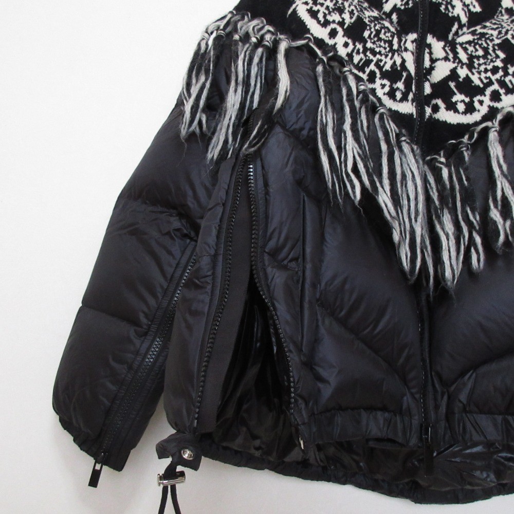 sacai Knit Panel Fringe Down Jacket 19-04559 Size 1 Black Women USED