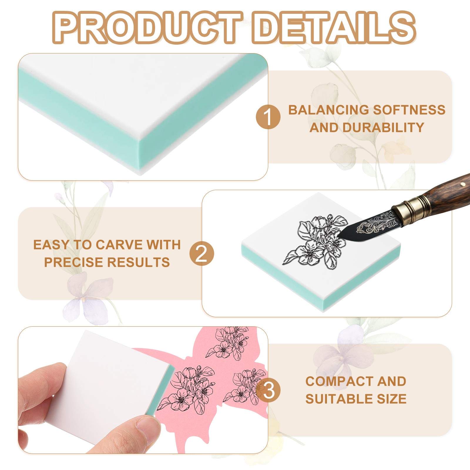 4Pcs 2X2 Rubber Carving Blocks, Soft Linoleum Art Carving Block, Green