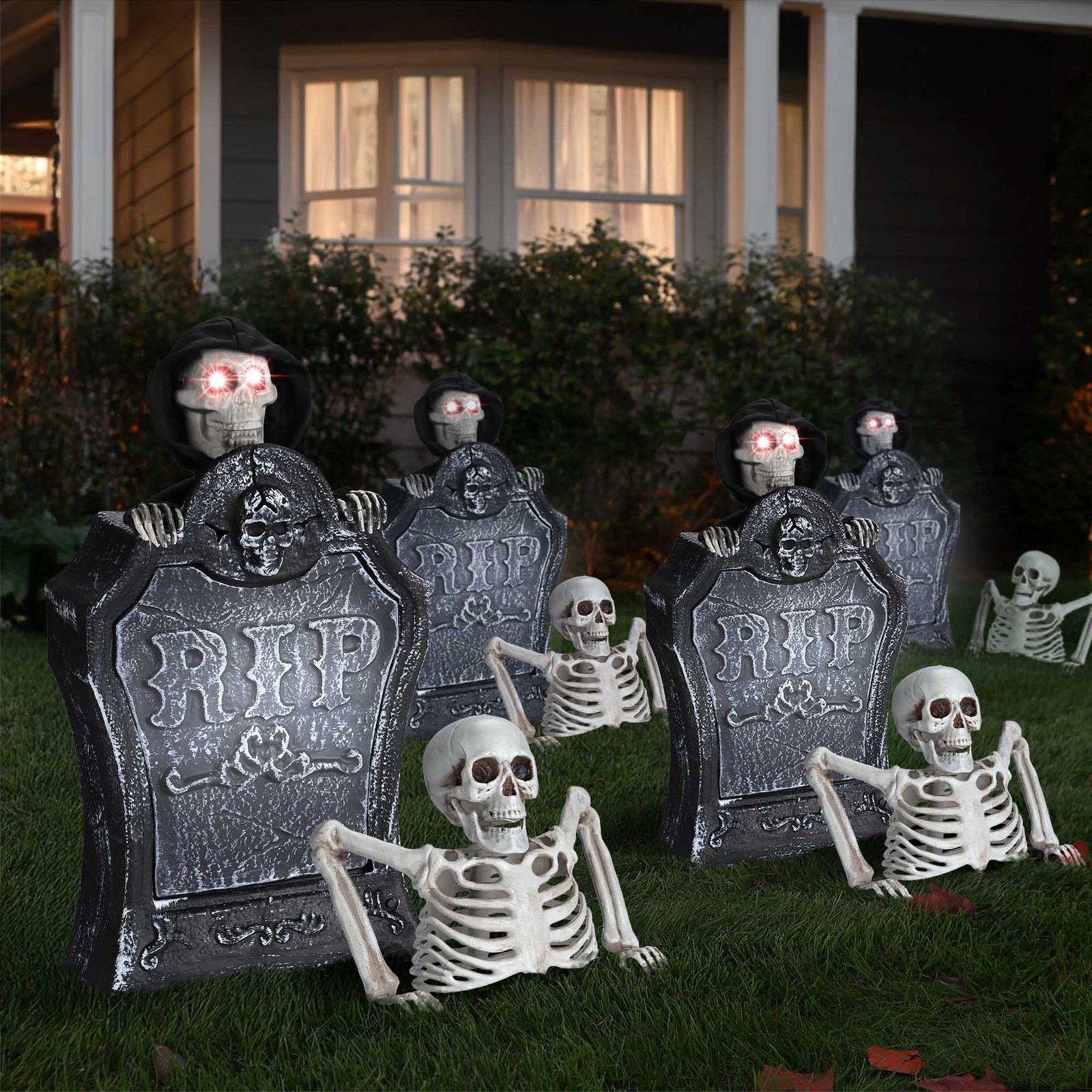 AplusChoice 15 Animated Halloween Tombstone Half Skeleton Lights Gravestone