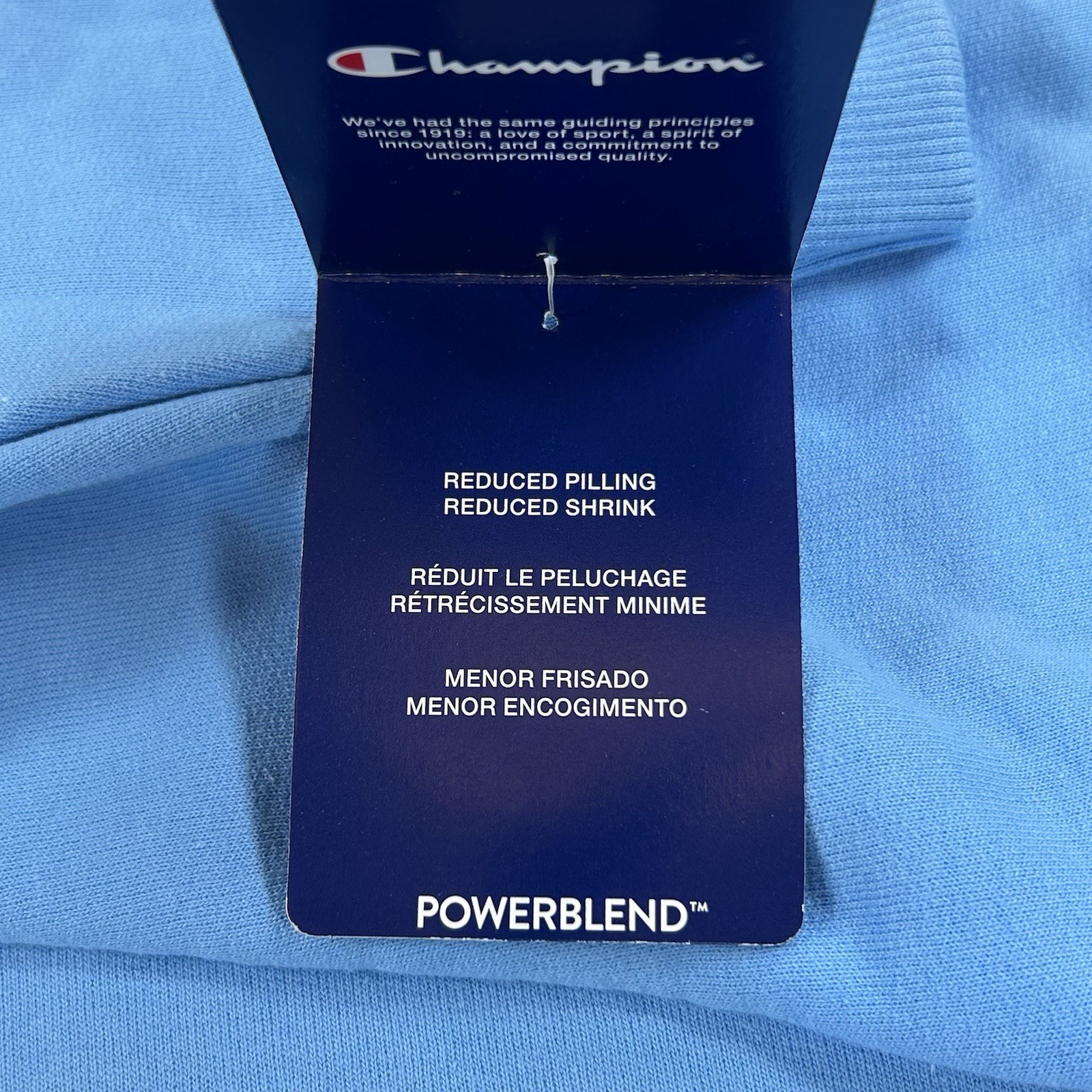 как выглядит Champion Mens Powerblend Fleece Logo Hoodie Light Blue Soft XL Active NWT фото