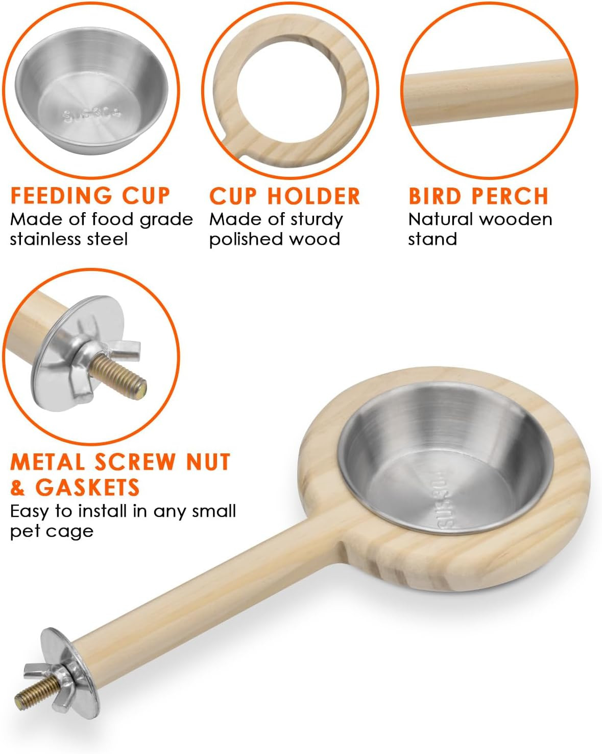 Bird Perch Bird Feeding Cup Parrot Wood Perch Stand Toy Bird Cage Accessory for