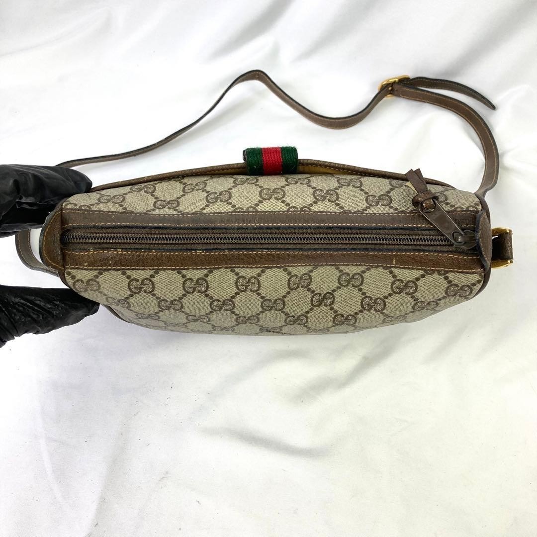 как выглядит GUCCI GG Sherry Line Interlocking G Shoulder Bag Crossbody PVC Leather Brown фото
