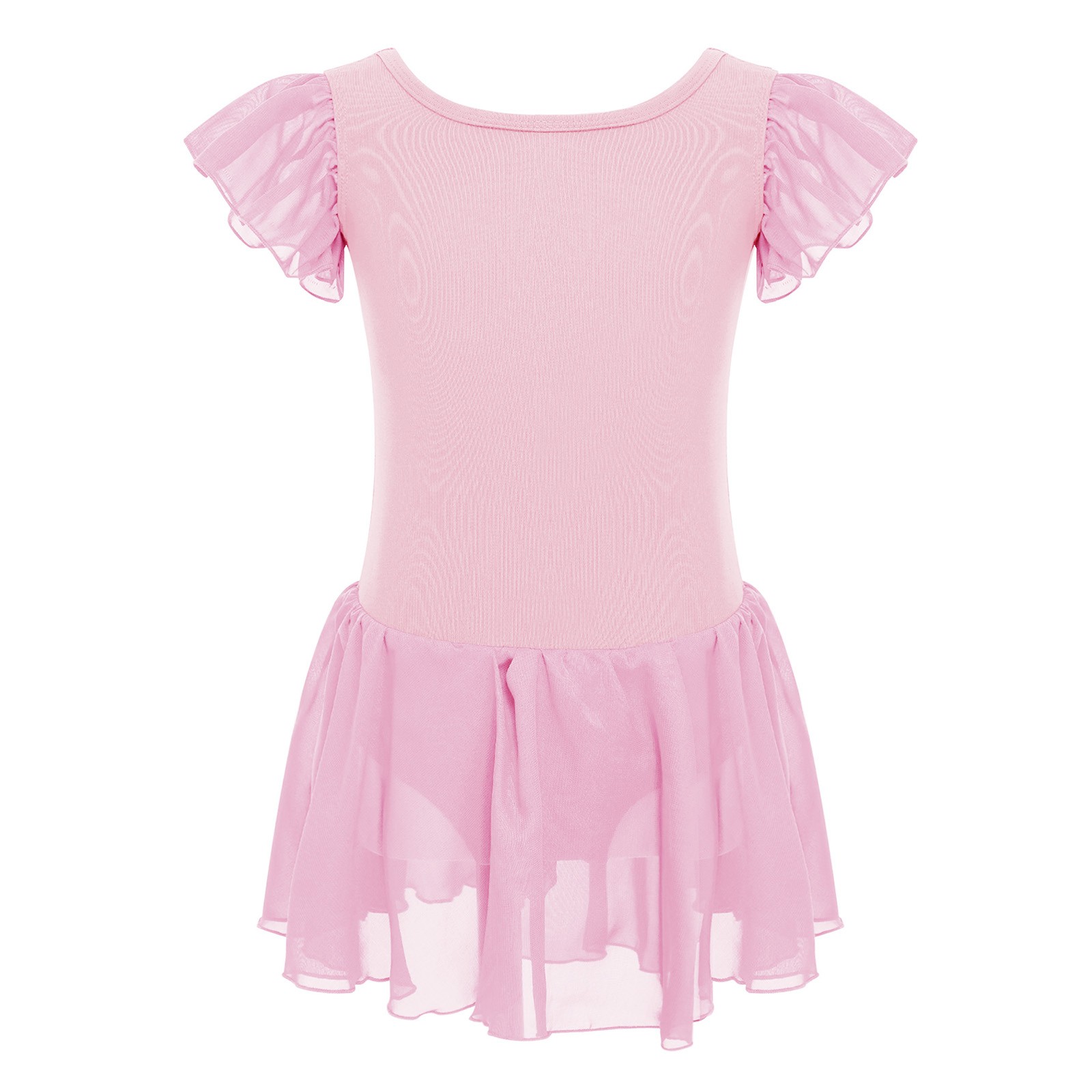 как выглядит Kids Girls Dance Ruffle Sleeves Dress Performance Ballet Briefs Dancewear Mesh фото