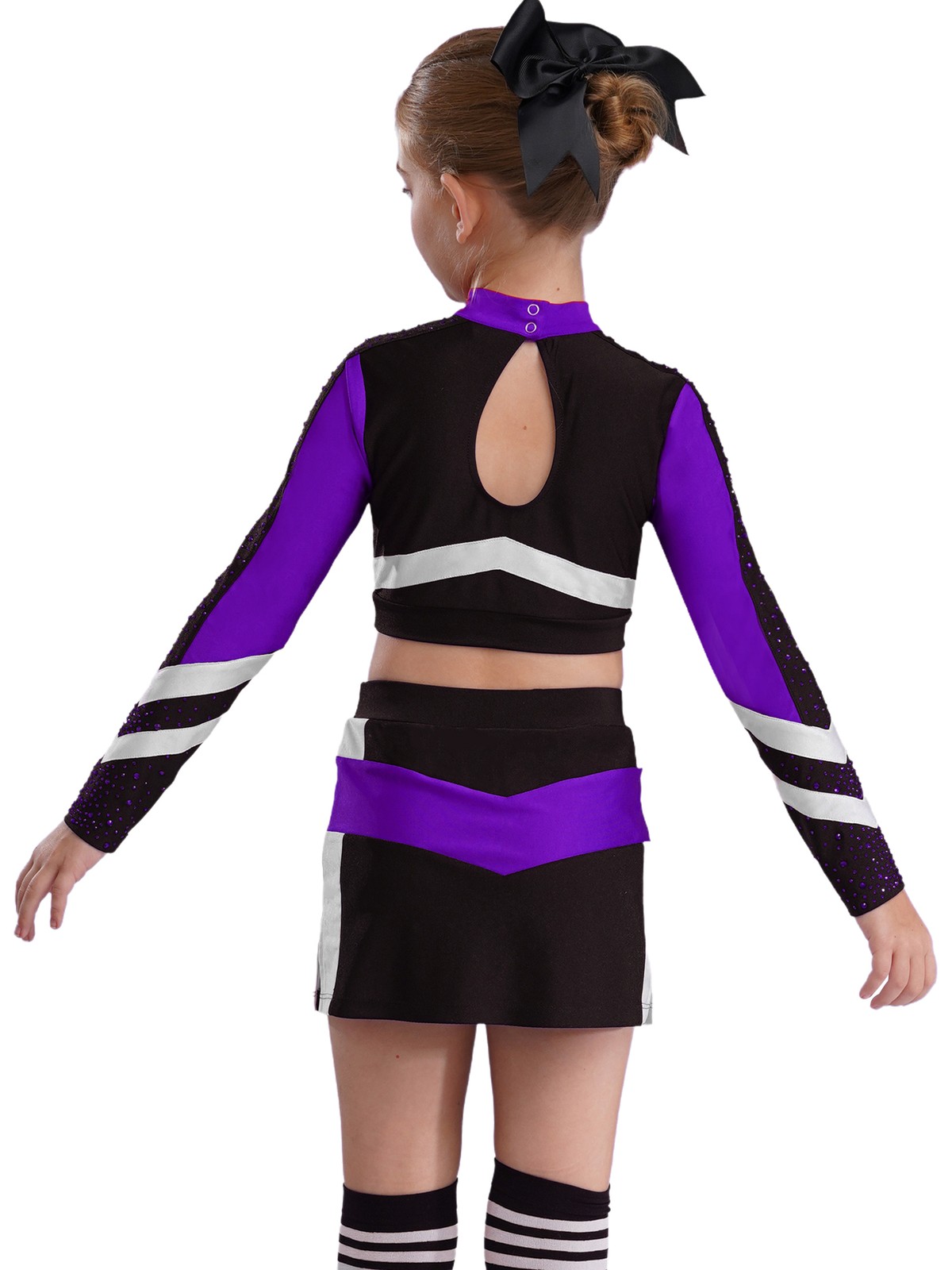 Kids Girls Costume Tango Cheerleading Overlay Dancewear Long Sleeve Dress Rave
