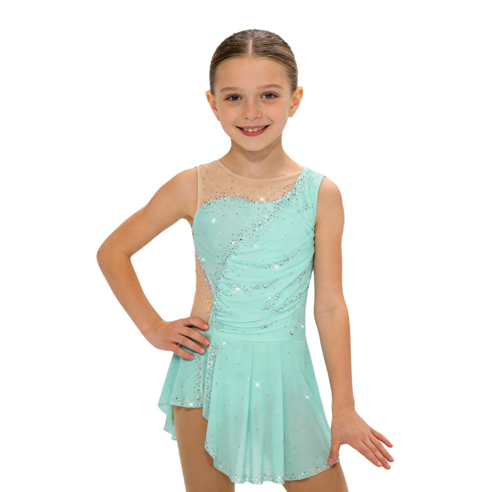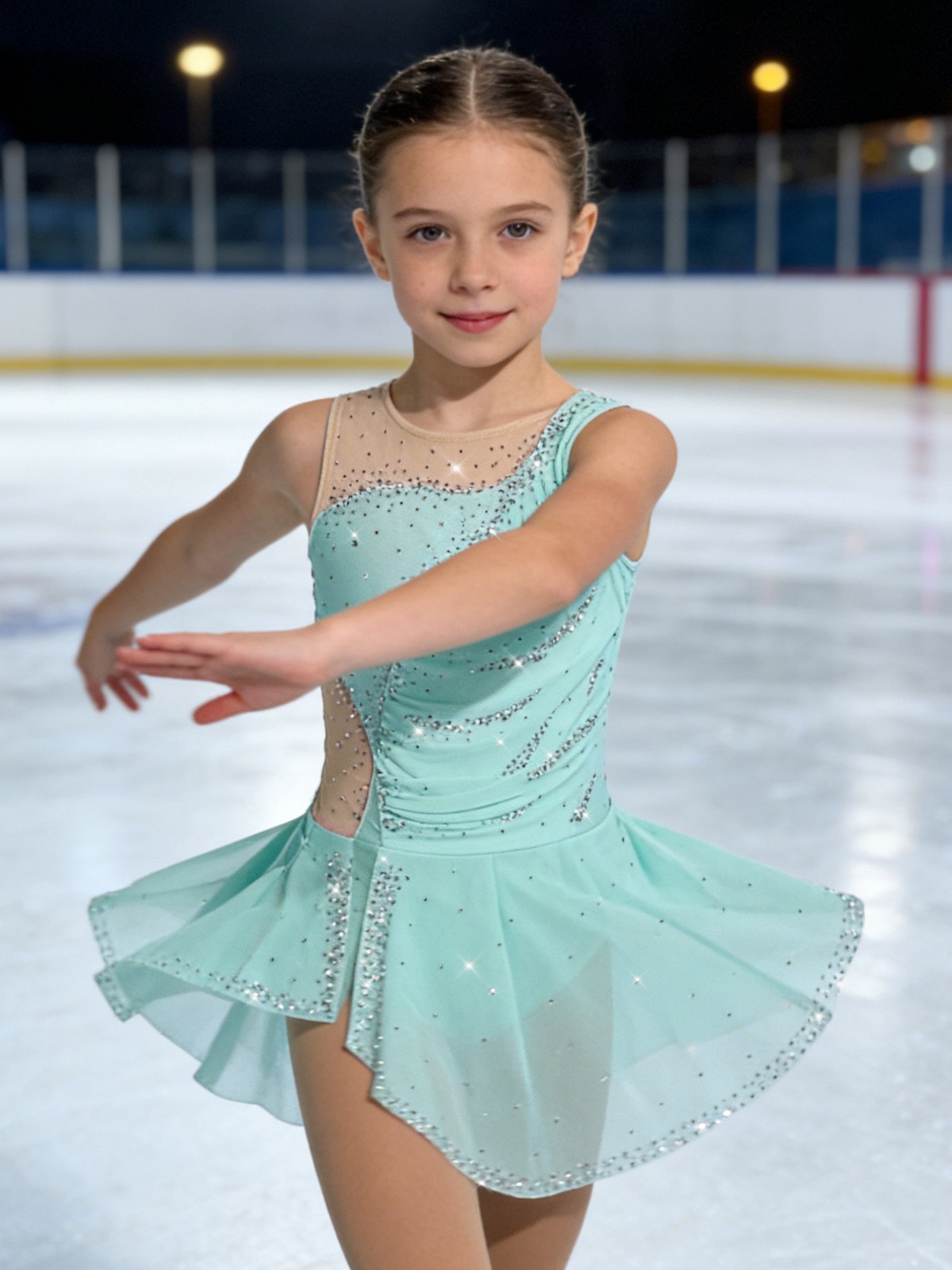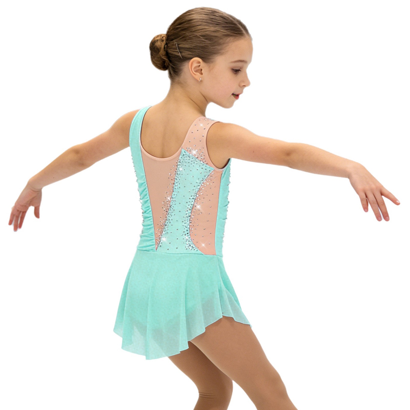 Girls Dress Ballet Skirted Leotard Ballroom Jazz Dancewear Rhythmic Rhinestone