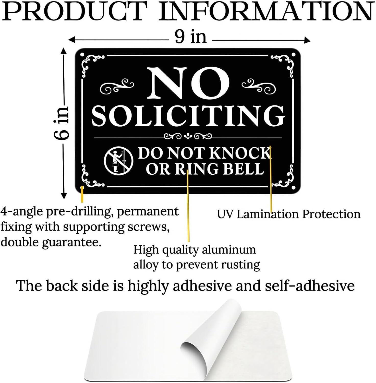 2 Pack No Soliciting Sign for Front Door,9 X 6 Inches Self-Adhesive No Solicitin