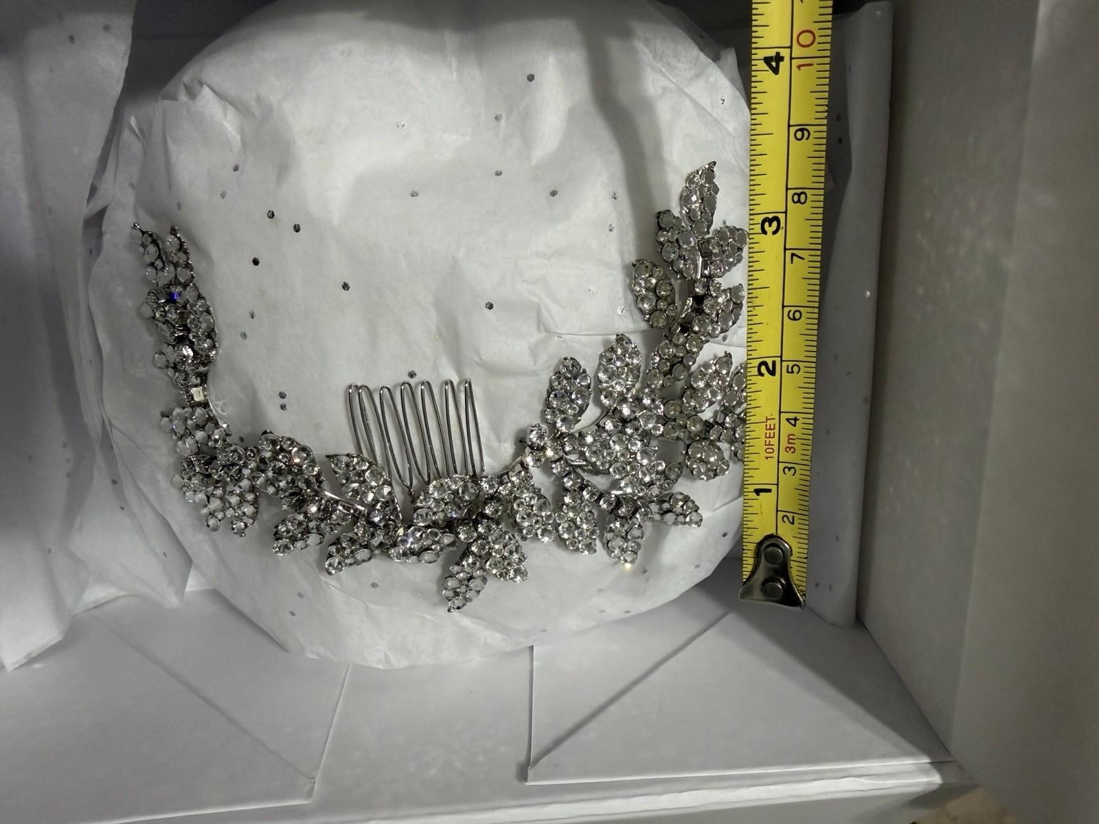 Evaguadalupe Silver Bridal Hair Comb with Rhinestones, Approx. 7.5 Inch