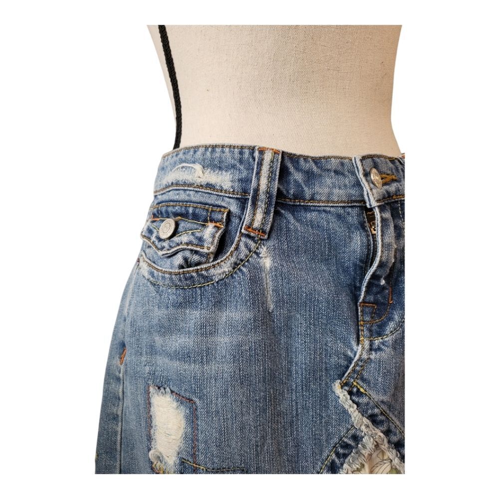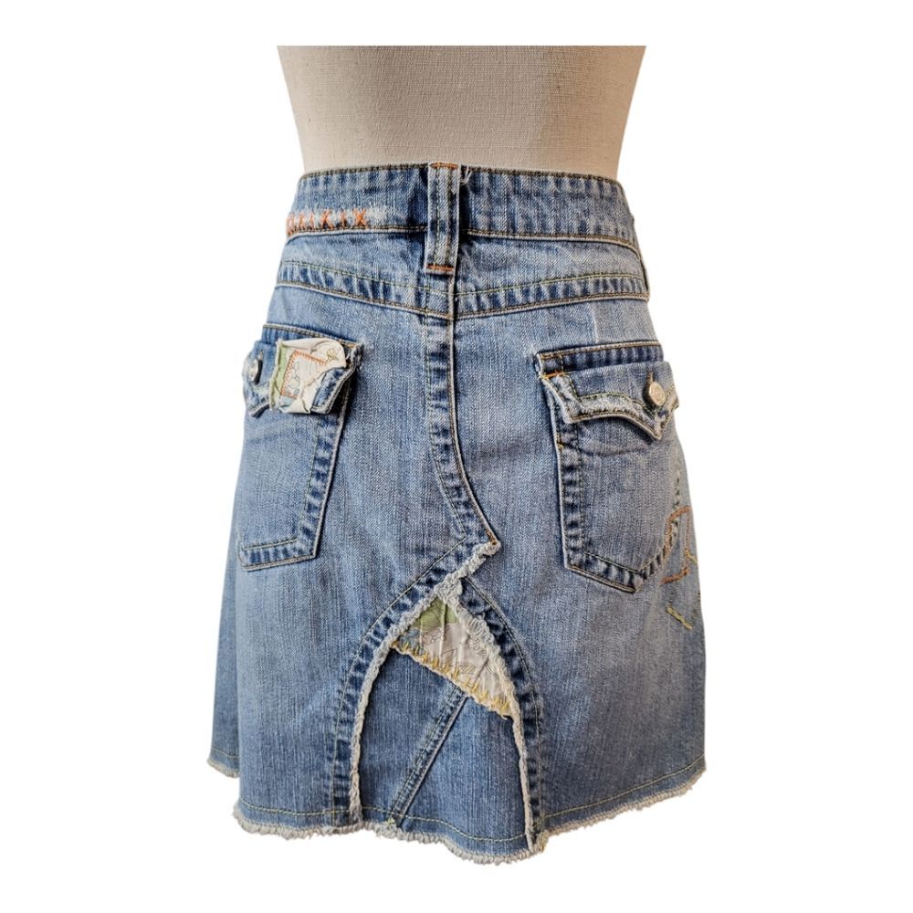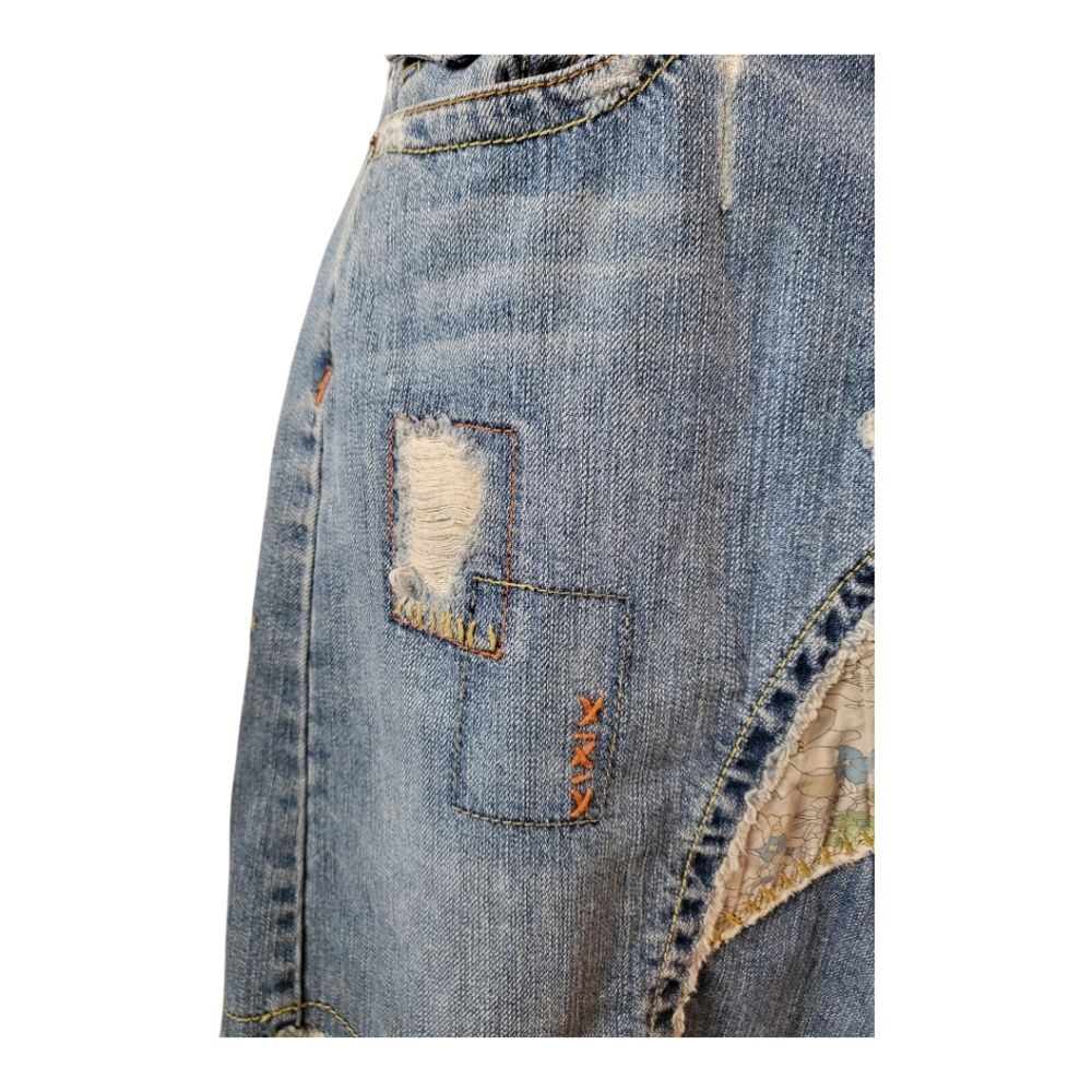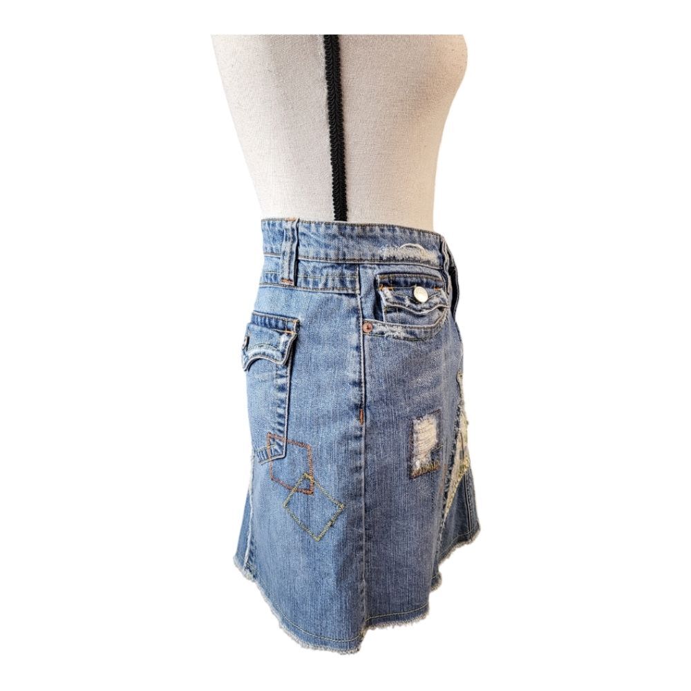 как выглядит Vintage patchwork and embroidered Boho style denim skirt Size L фото