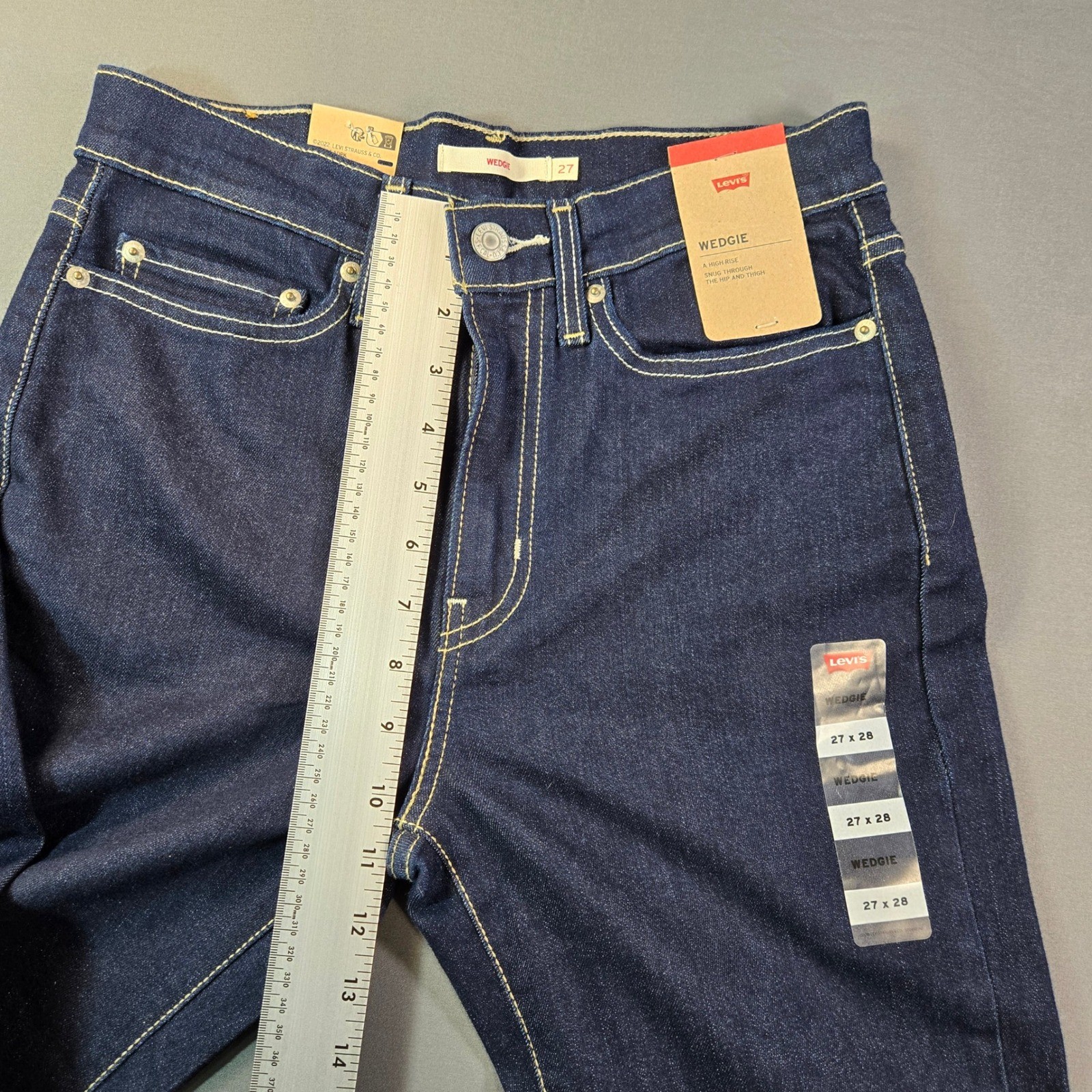 как выглядит Levis Wedgie High Rise Straight Leg Jeans Indigo Blue Womens Size 27x28 NEW фото
