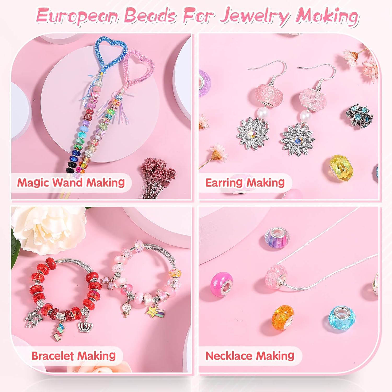 Large Hole Glass Beads for Jewelry Making, 110 Pieces European Bulk, Big Hole La