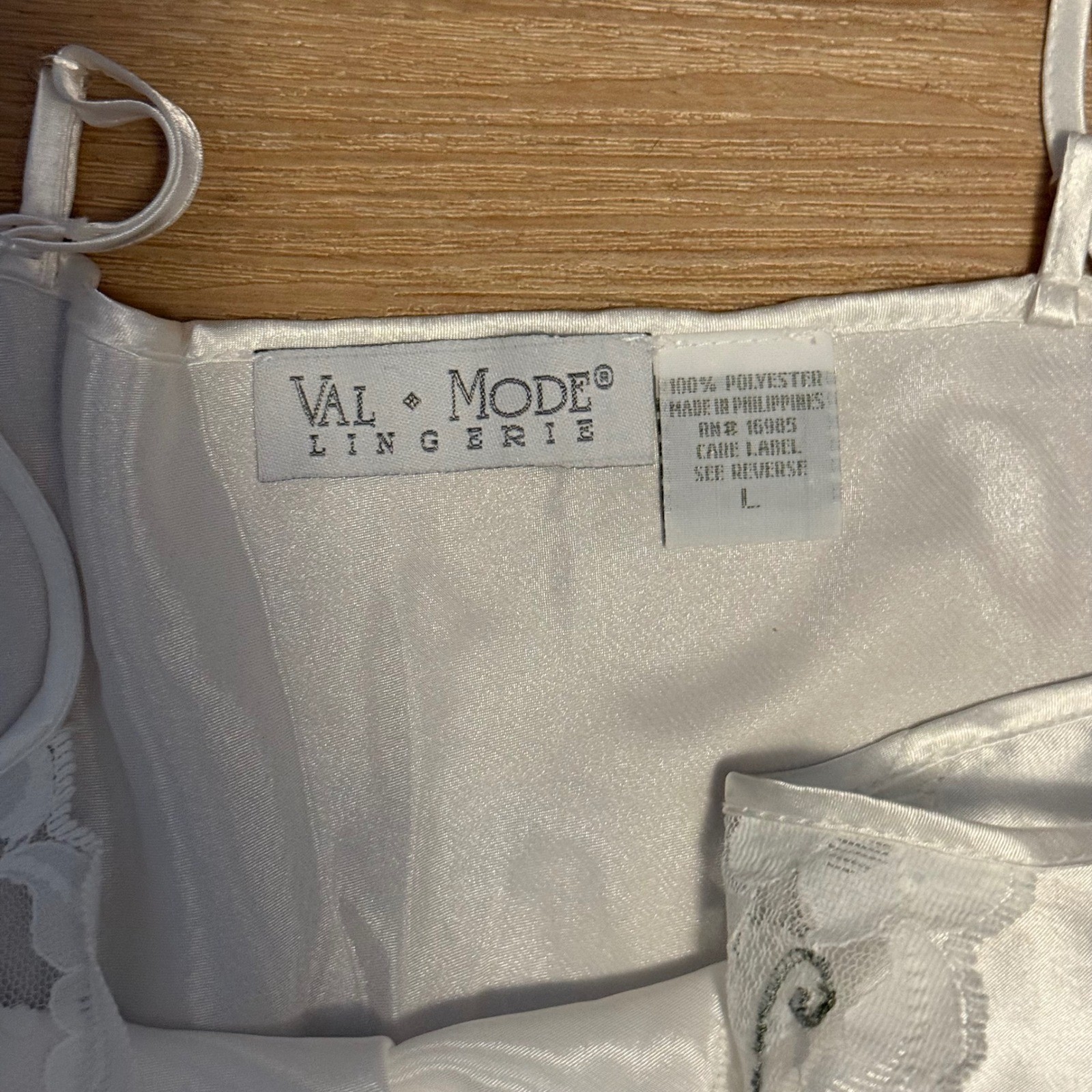 Val Mode Vintage White Satin Bridal Nightgown Lace Floral Embroidery Large