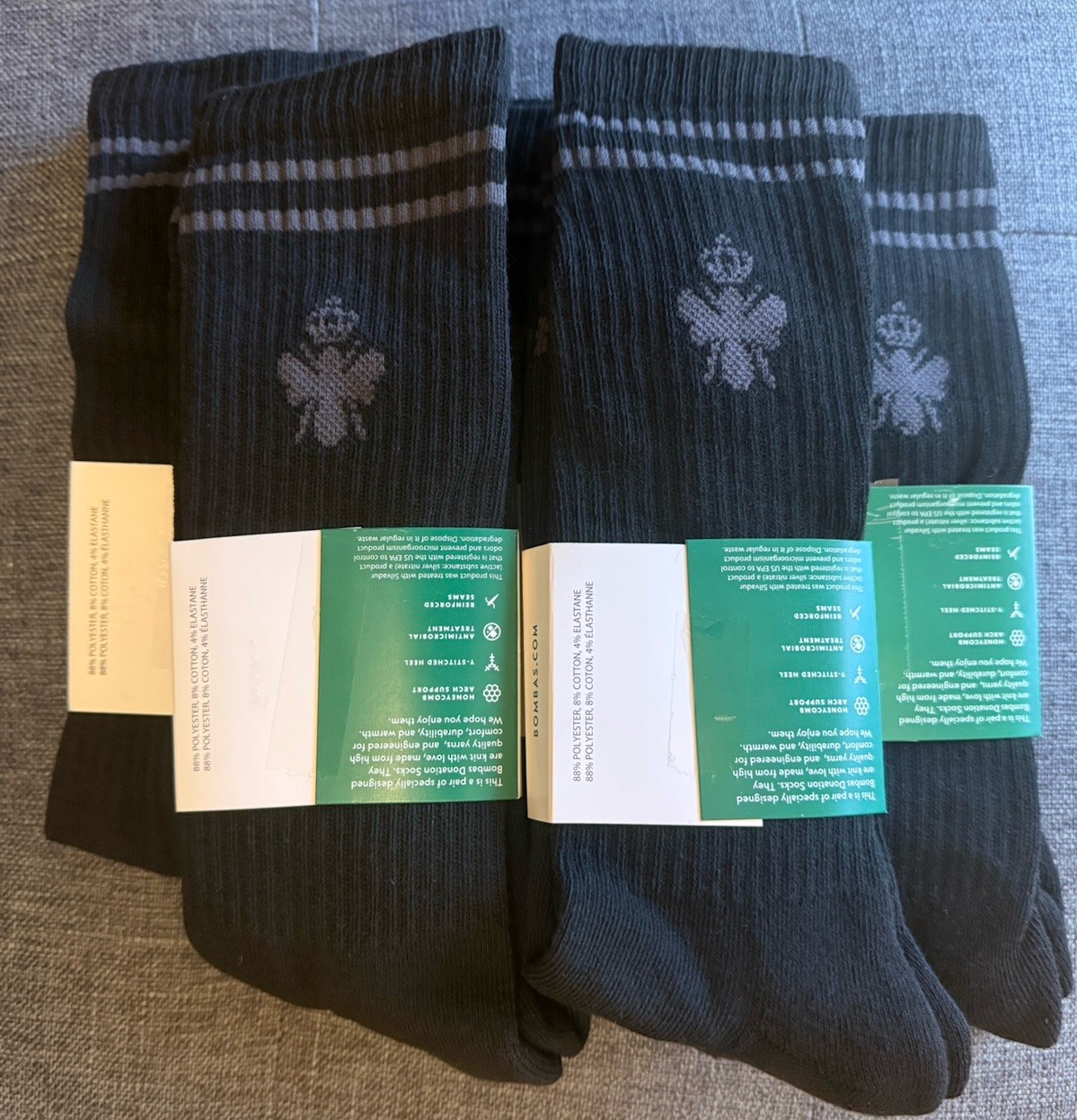Bombas Men's Black Crew Socks Size XL Crew Calf Honeycomb Socks 5 Pairs NWT