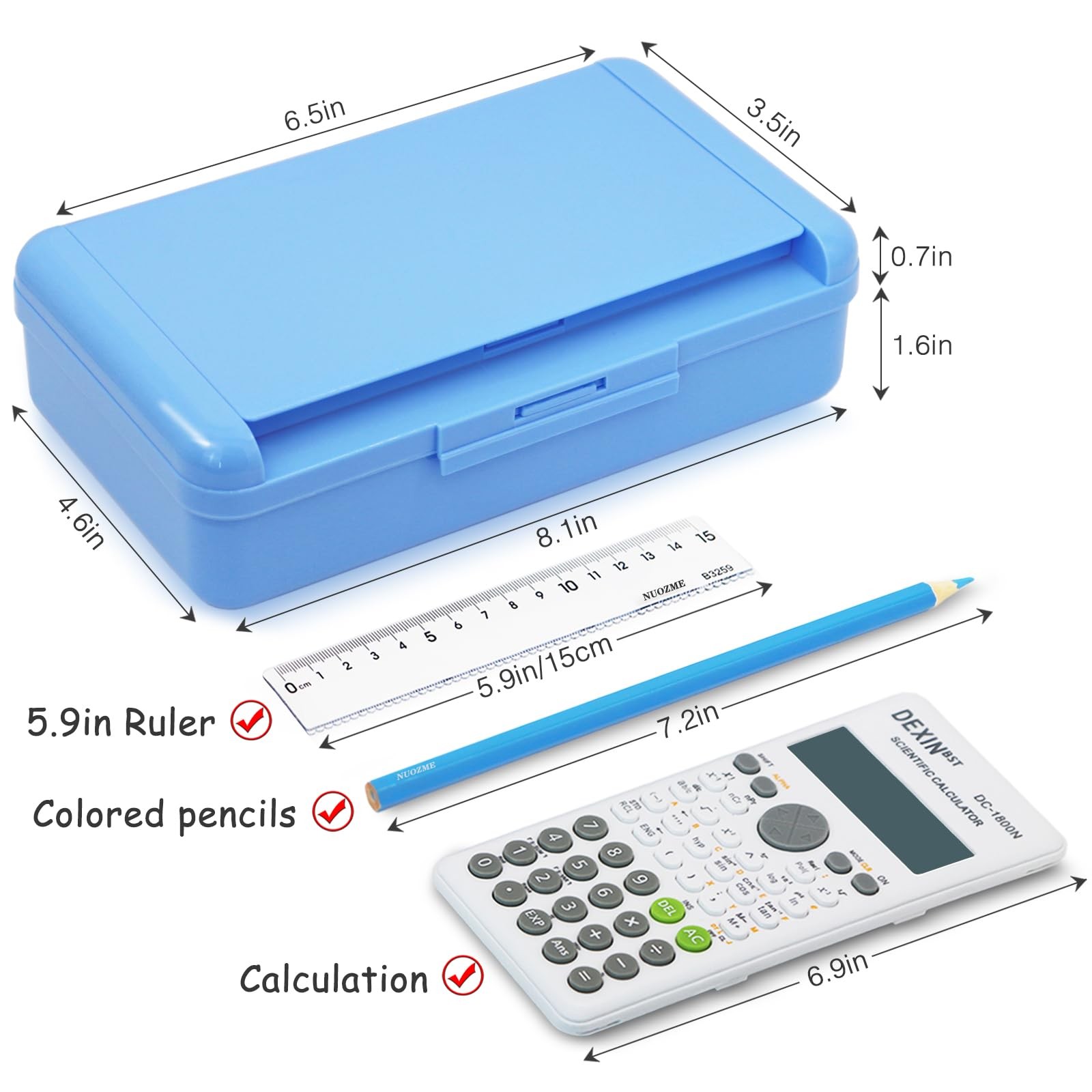 • Double Layer Pencil Box, Hard Pencil case 2 Compartments, Plastic Large Capacity