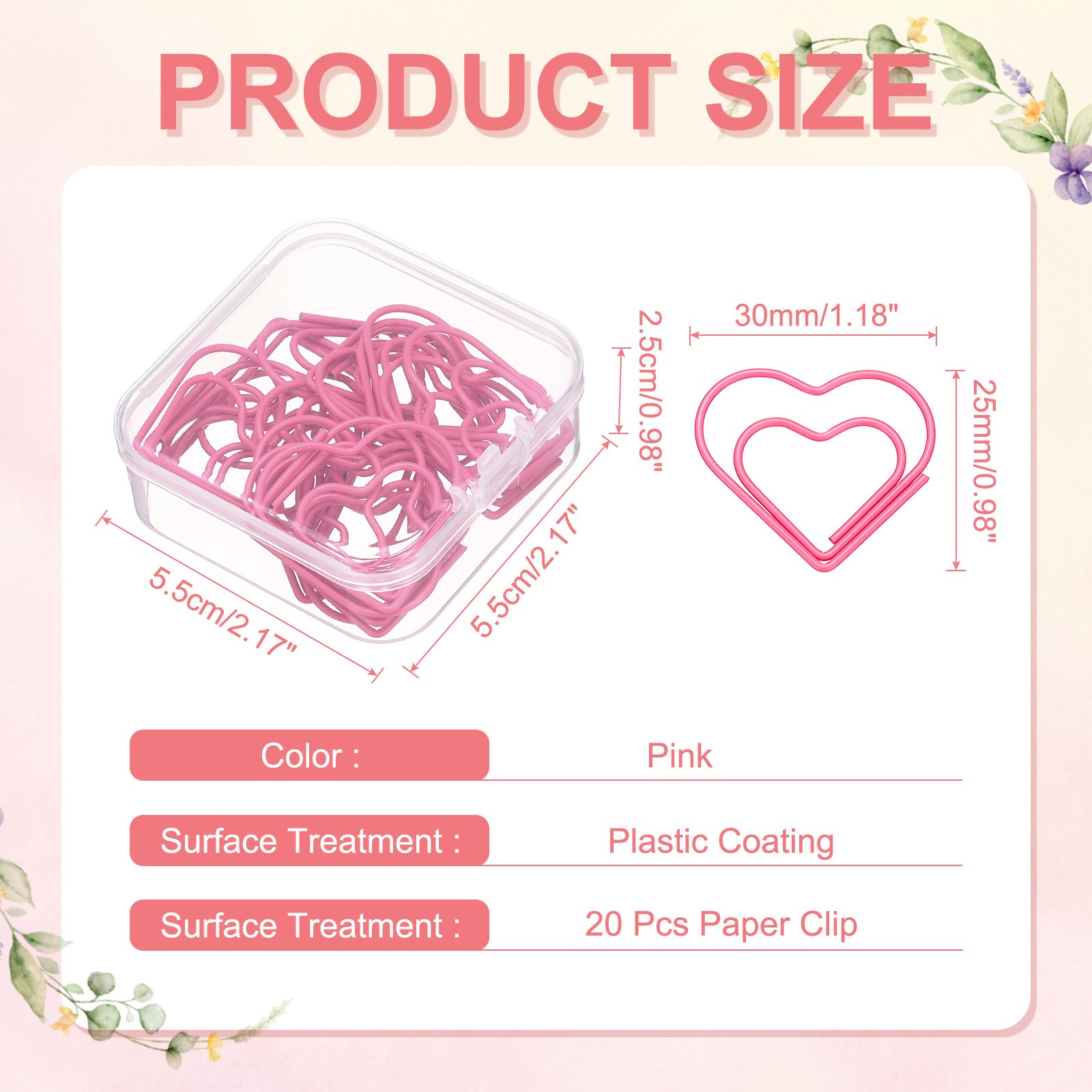 20 Pcs Heart Shape Paper Clip, Metal Paper Clip, Plastic Coating, Pink