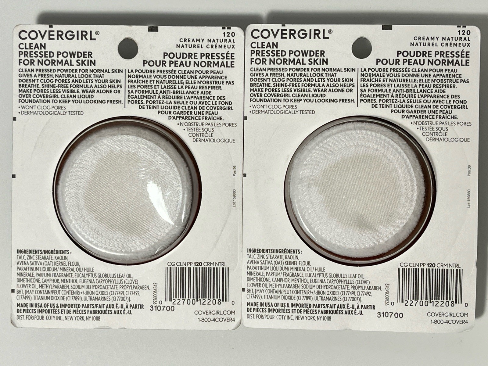 2x CoverGirl Clean Pressed Powder 120 CREAMY NATURAL Original TALC