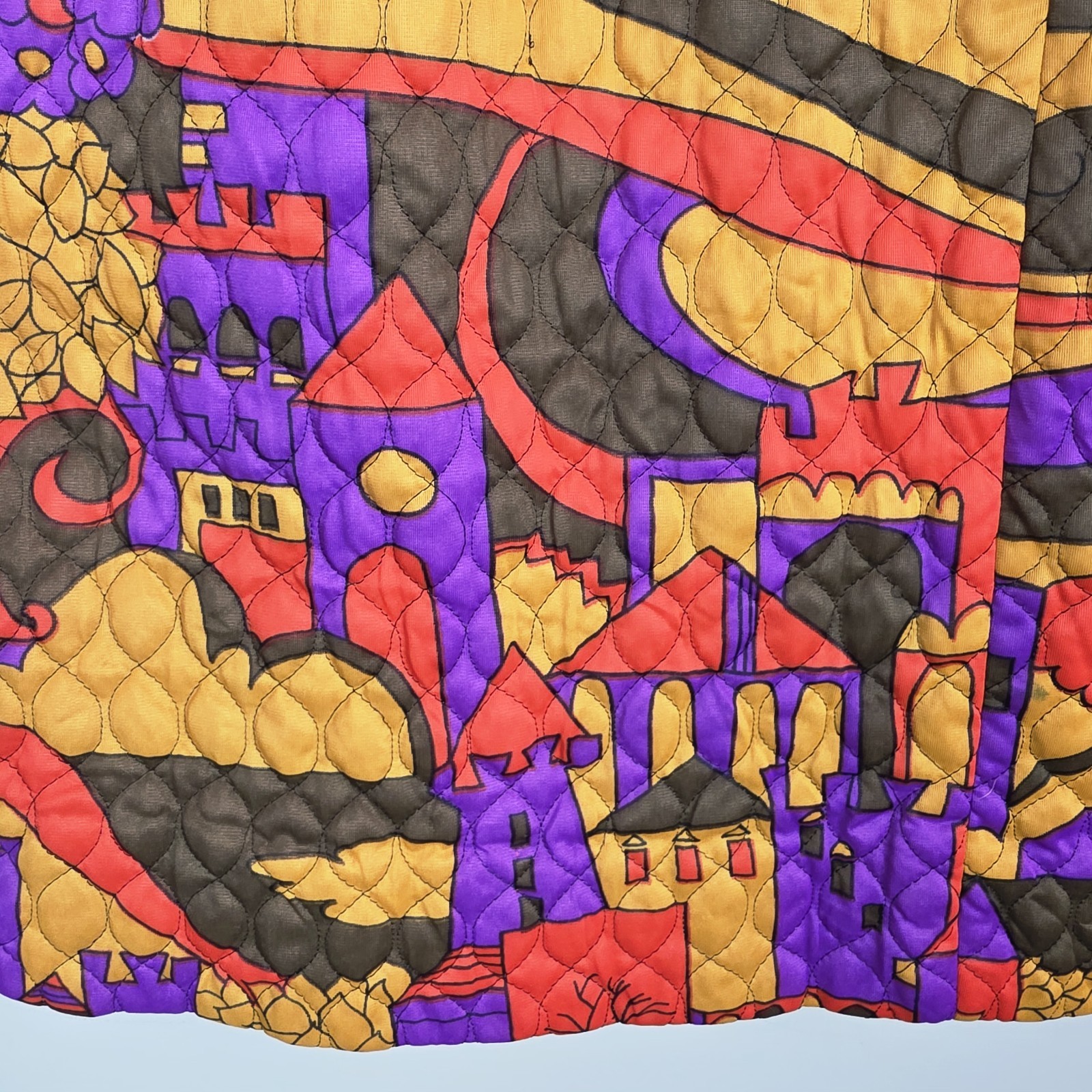 Vtg Handmade Quilted Colorful Maxi Skirt 1970 s Mod Floral Medium.E112