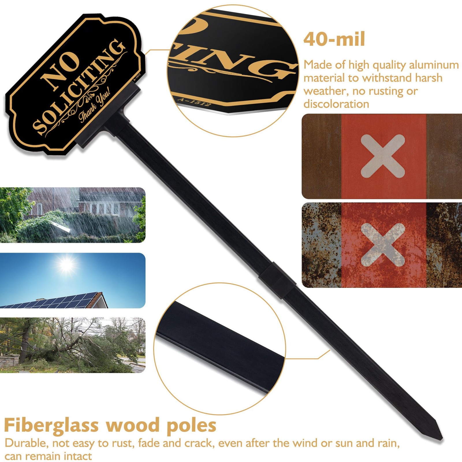 No Soliciting Sign for House with Stake Outdoor Yard Sign Adjustable Height