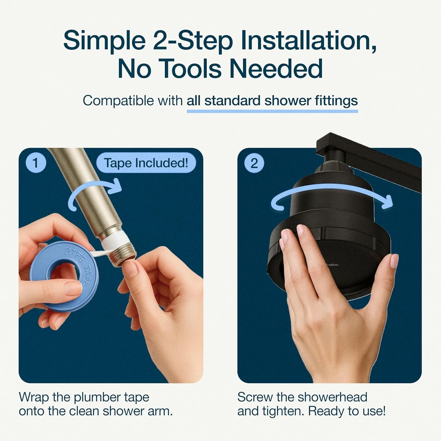 Filtered Shower Head for Hard Water Filter - High Pressure, Removes Chlorin...