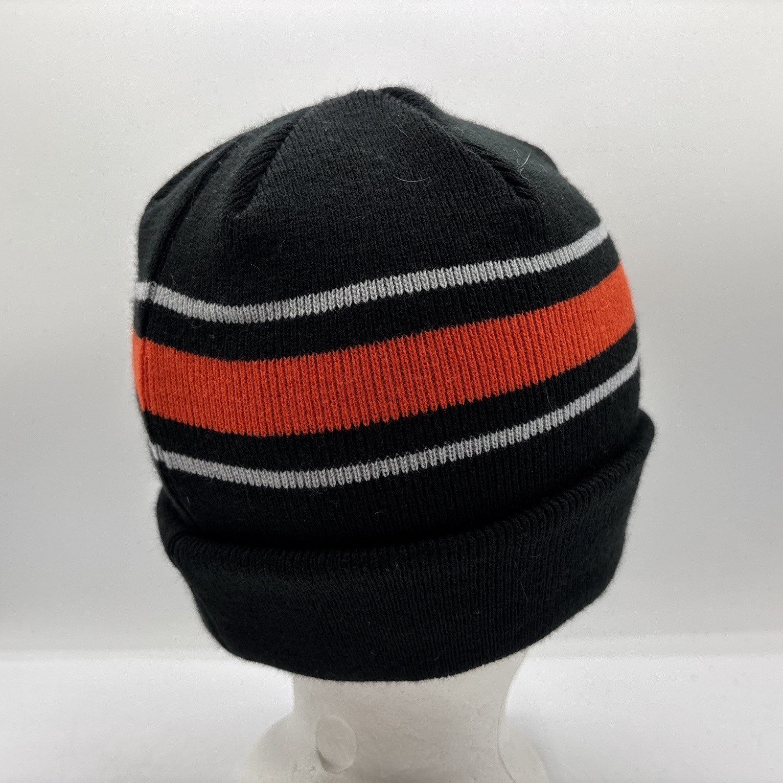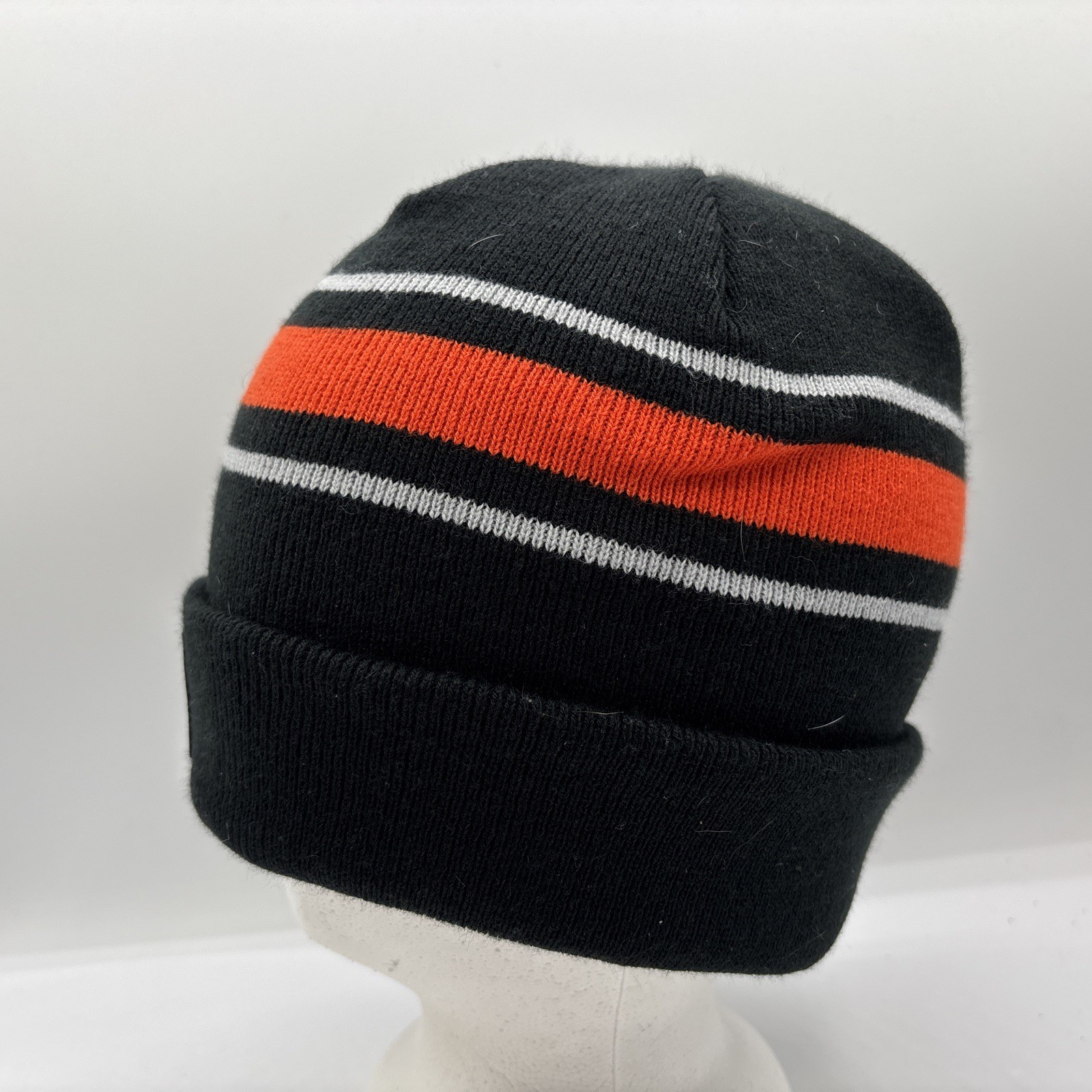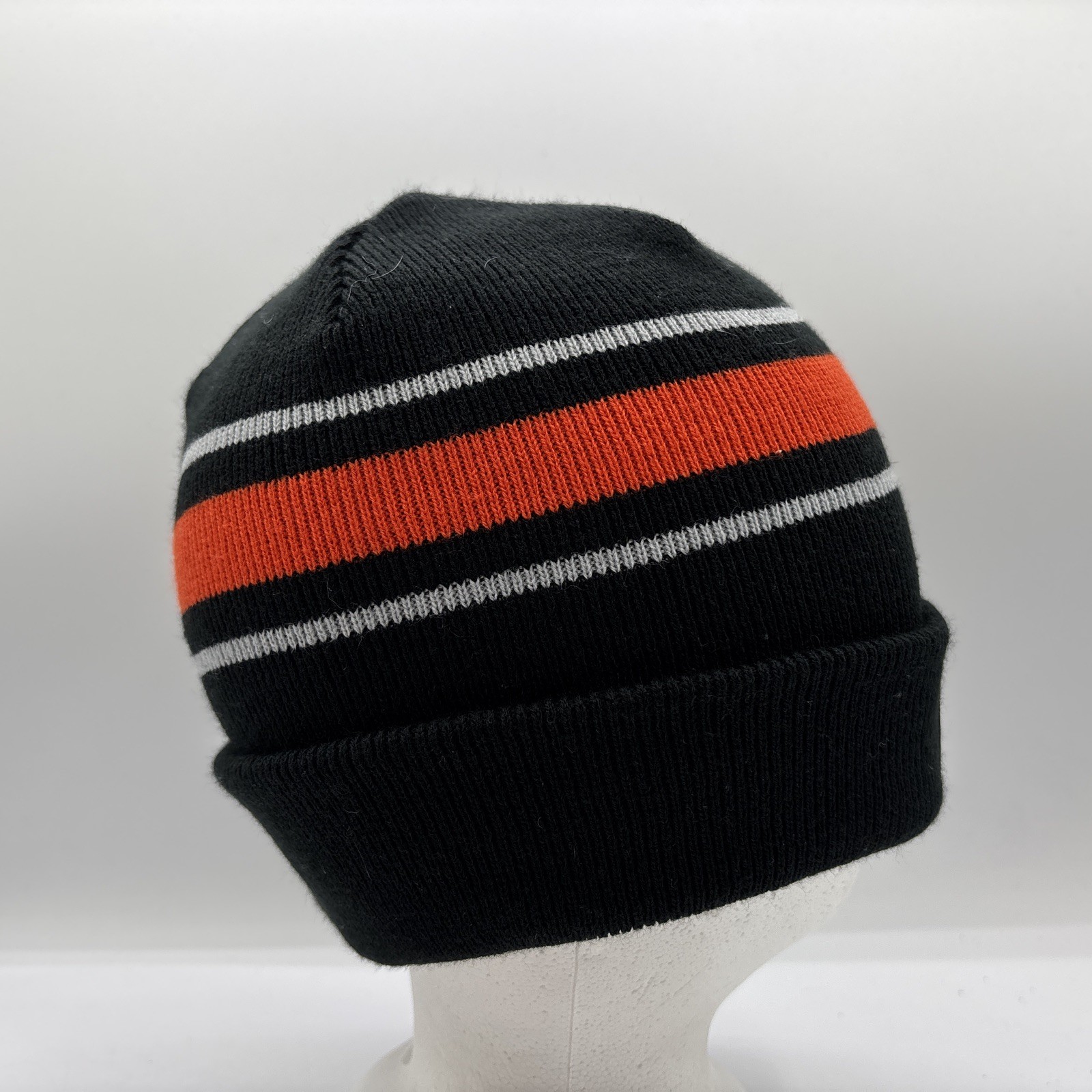 как выглядит Hurley Youth Black/Orange Striped Cuffed Knit Beanie фото