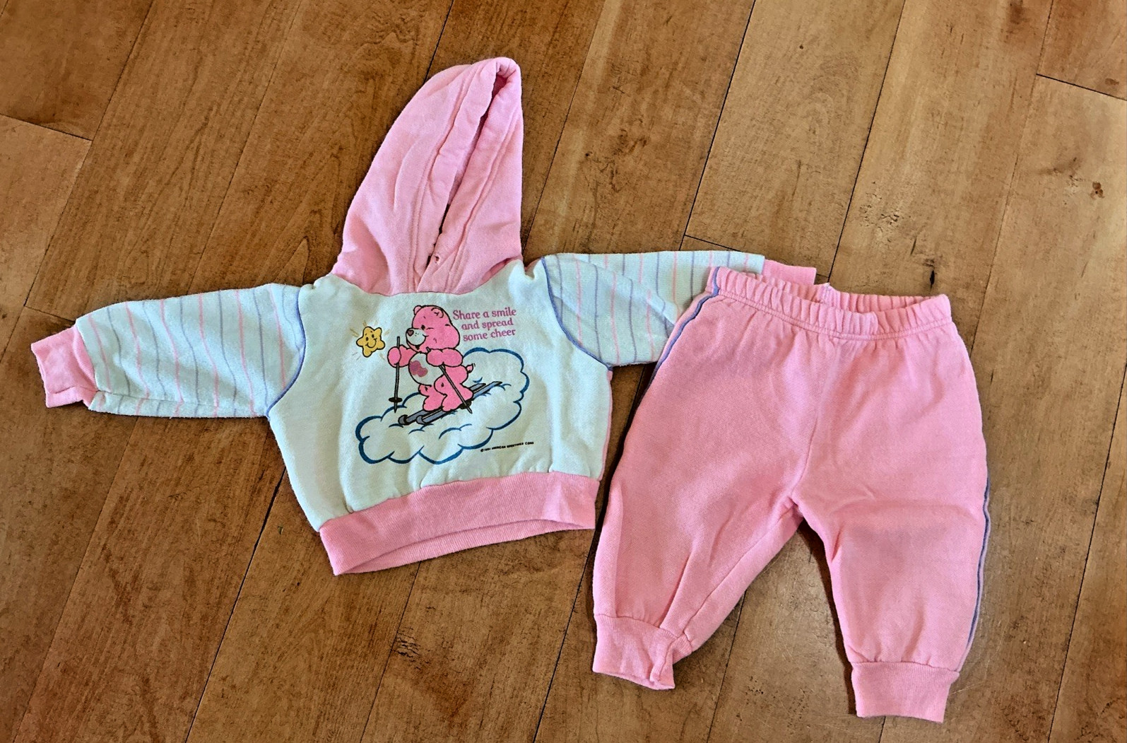 Vintage Care Bears Hoodie Outfit Set T-Shirt Size 12 Months 1980's