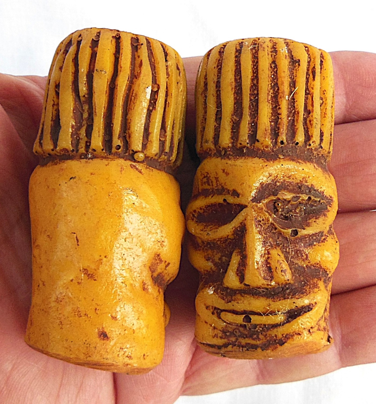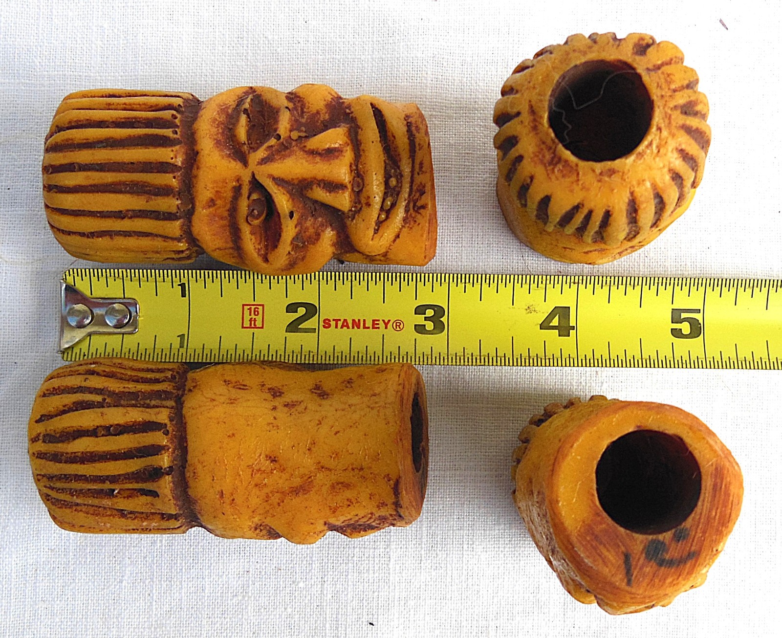 Circa 1970's Lot of 4 Large 2-3/4 Tiki Macrame Beads
