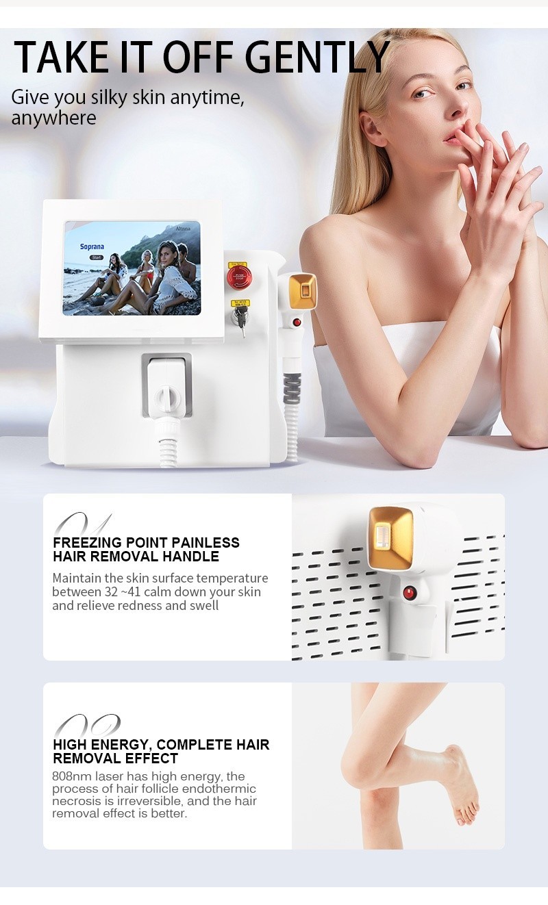 808 Diode Laser Hair Removal Machine Ice Titanium Soprano Permanent Painless
