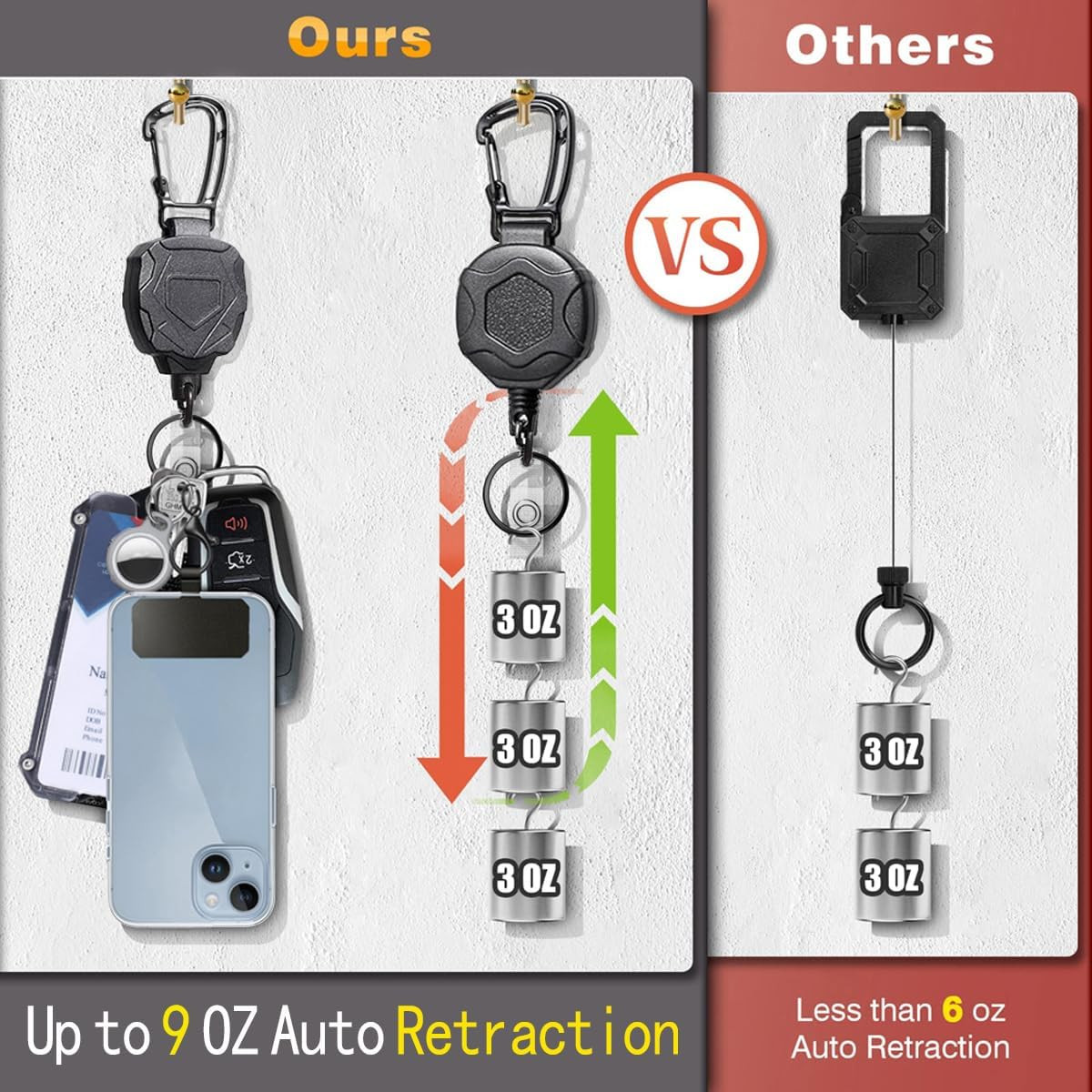 Badge Holder Retractable Clip Heavy Duty Carabiner Badge Reel Keychain
