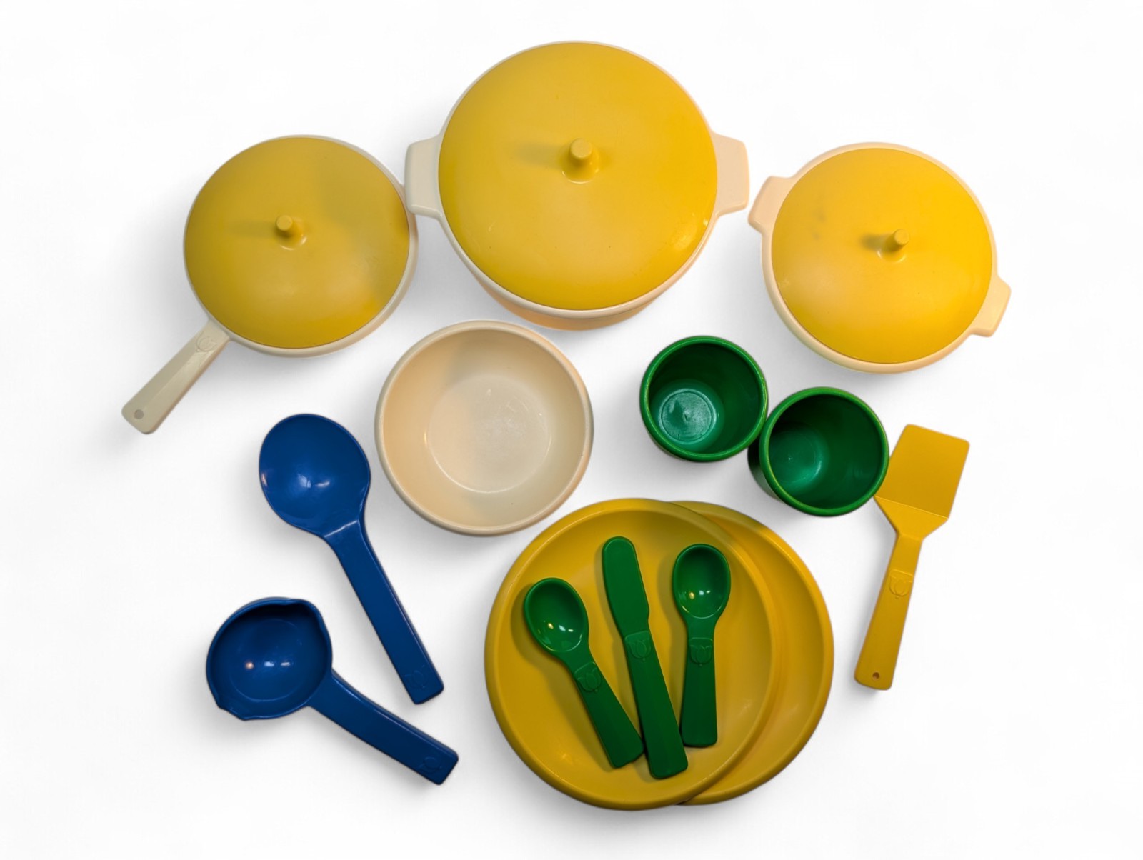 VTG 1984 LITTLE TIKES 17PC Kitchen Play Set PARTY WARE Dishes Pot Pan Cup Plate