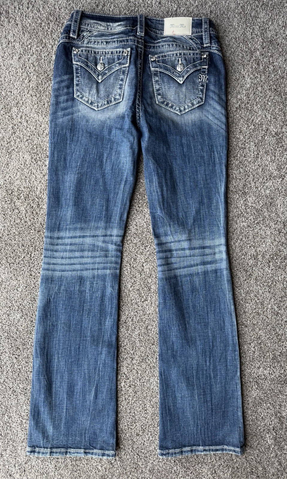 Miss Me Women's Blue Medium Wash Bootcut Denim Jeans 5-Pocket Logo Embroidered