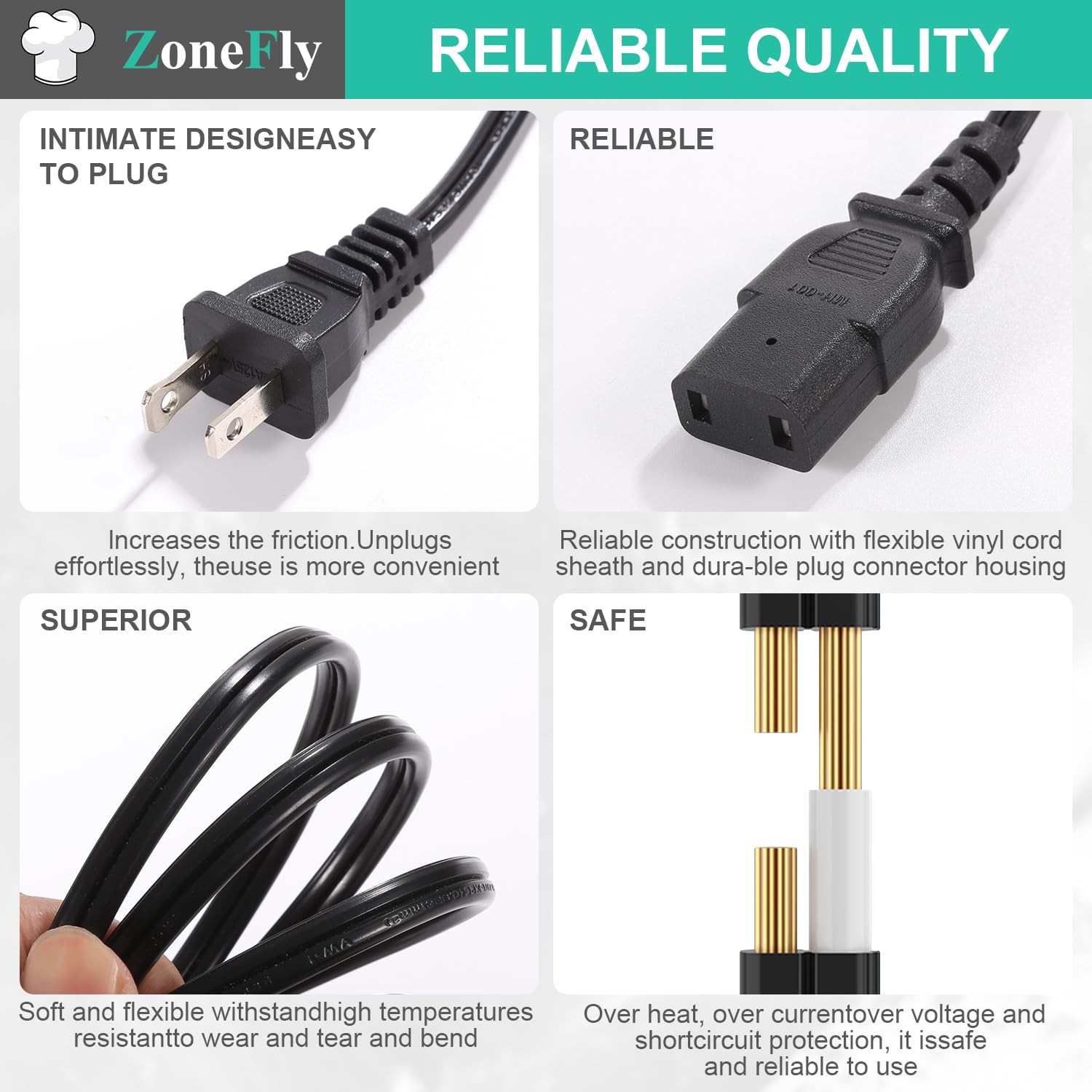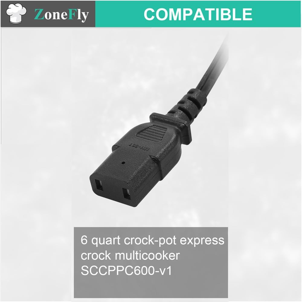 Original Power Cord Compatible with Crock-Pot 6 Quarts, for 6Qt-Crockpot