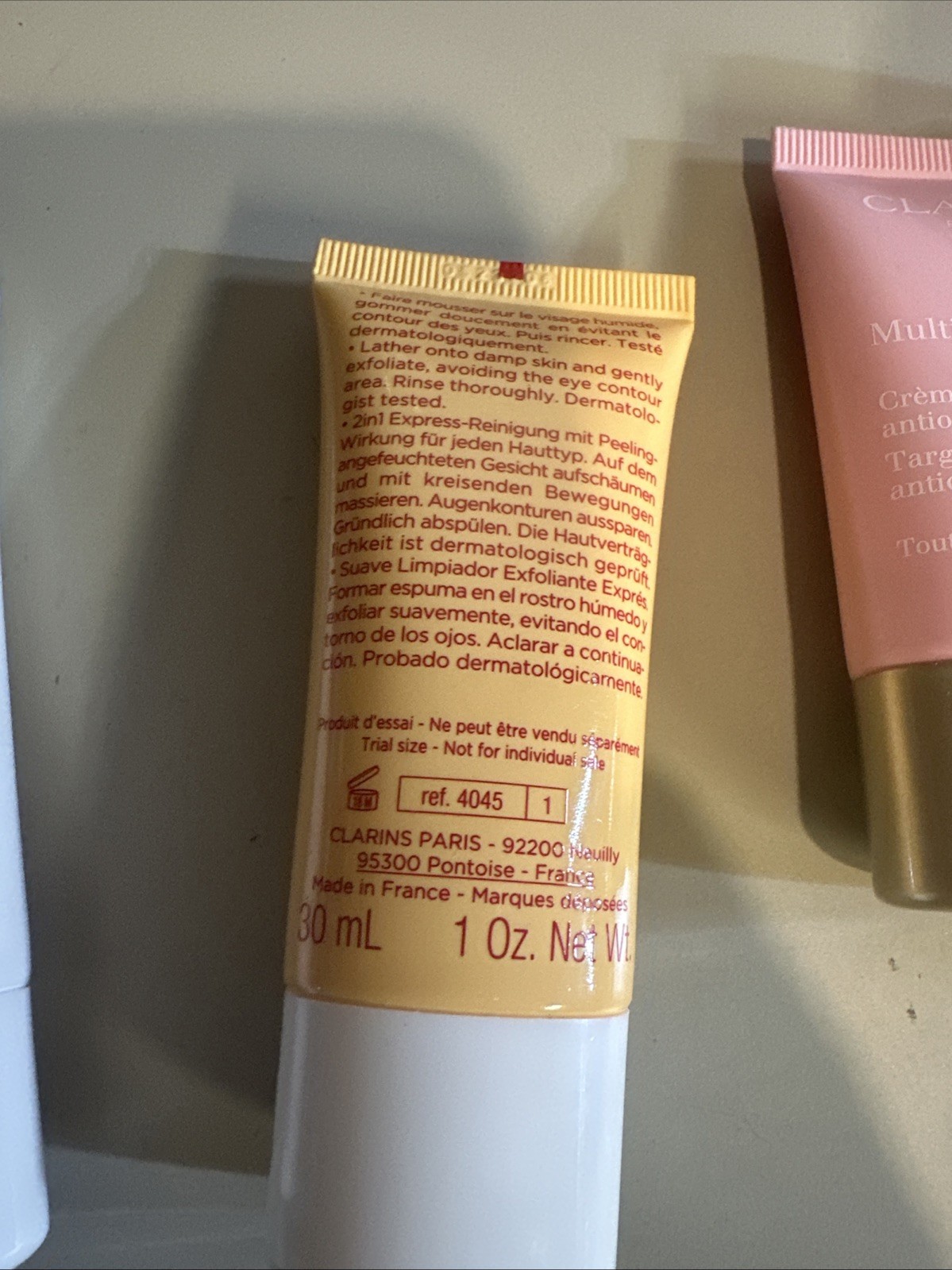 как выглядит Clarins 4 Piece Set Exfoliating Cleanser Hand and Nail Treatment Fine Lines New фото