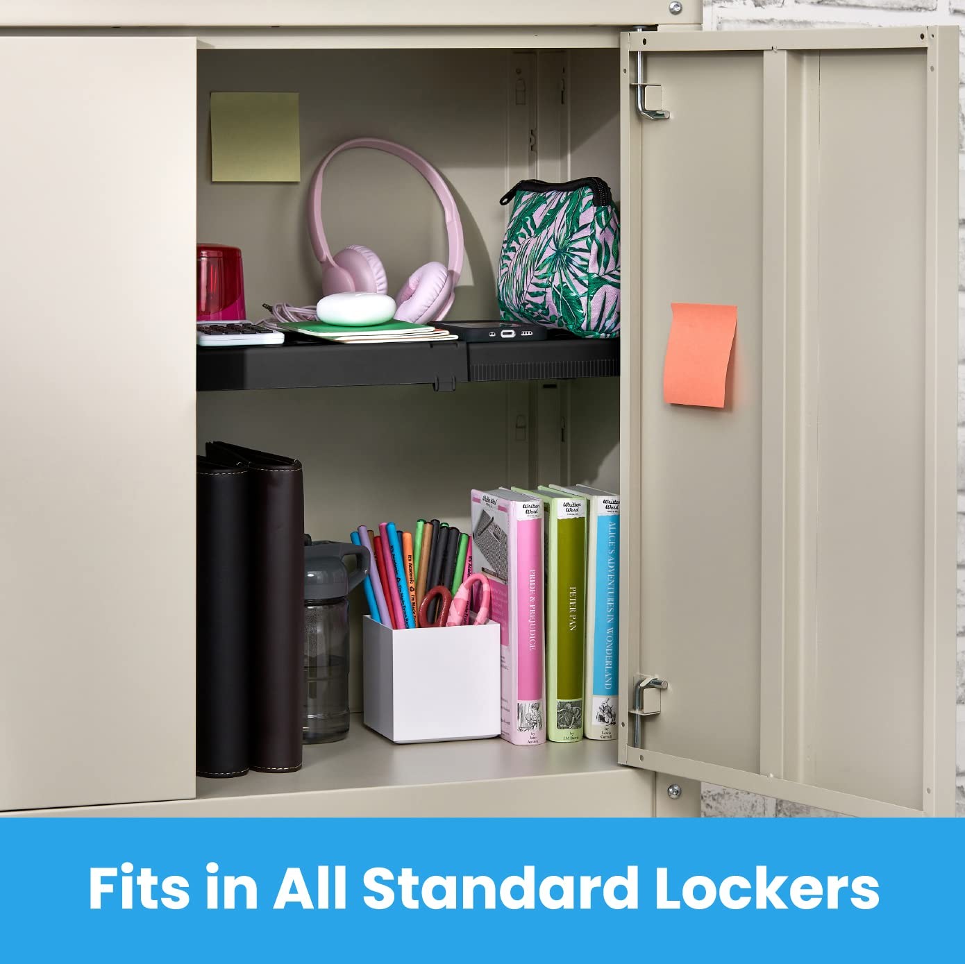 Adjust-A-Shelf Locker Shelf, Easy to Use, Extends to Fit Your Locker, Black, ...