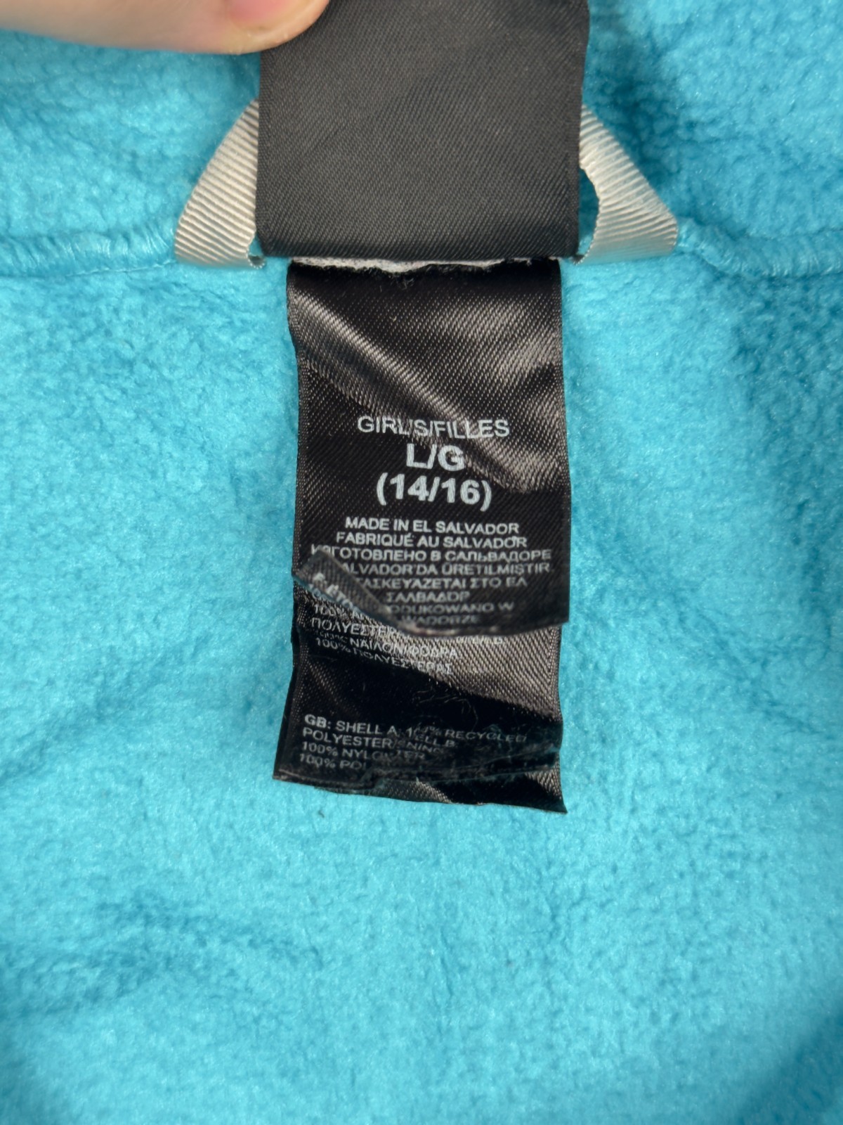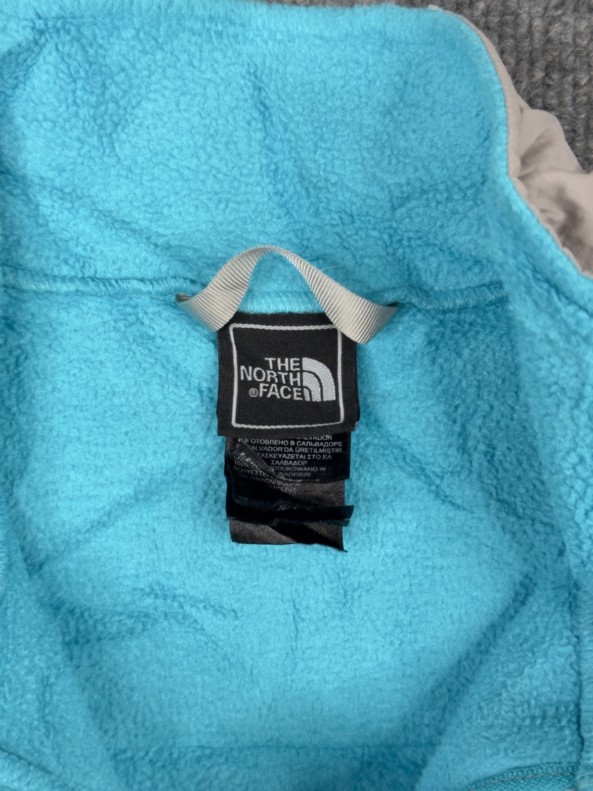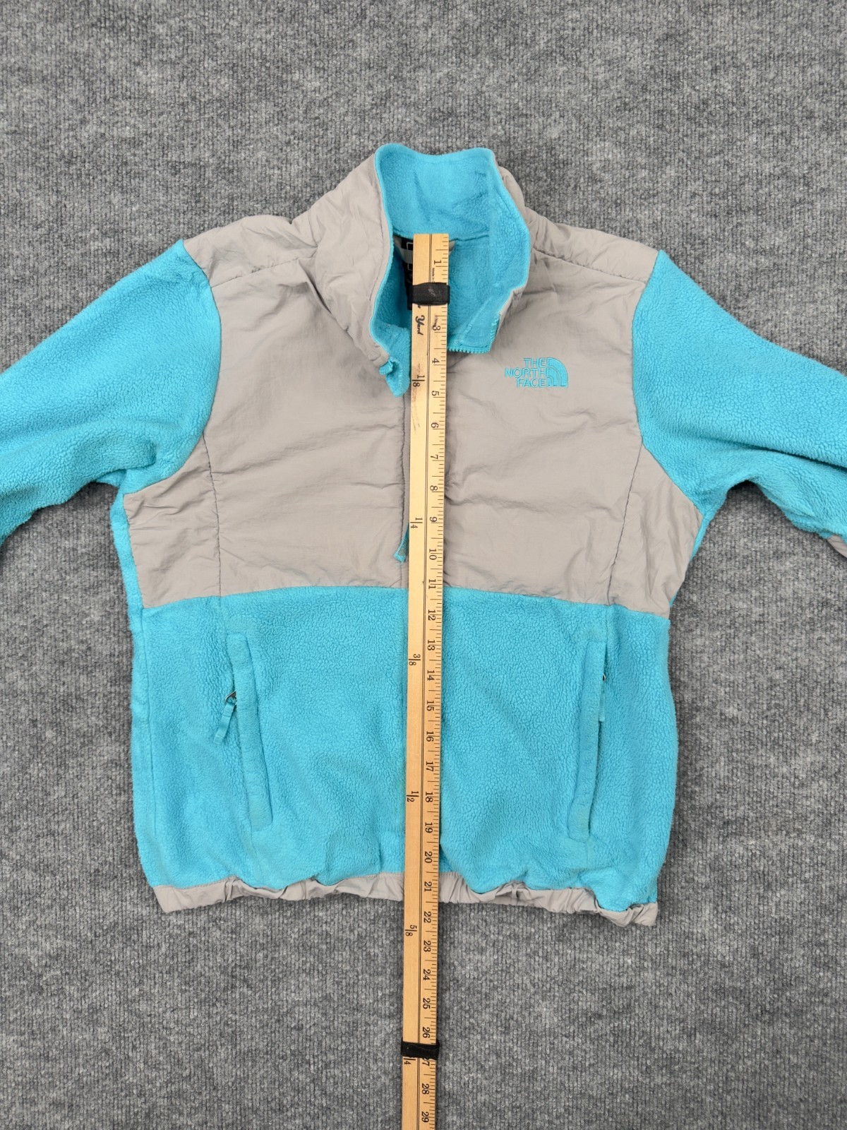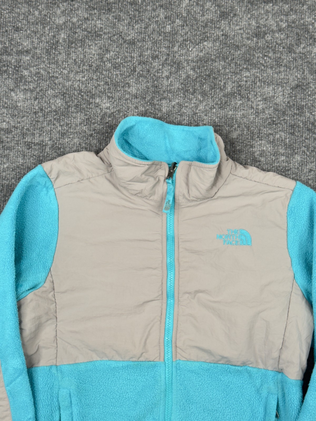 как выглядит North Face Girls Denali Polartec Fleece Jacket L 14/16 Blue Gray Full Zip фото