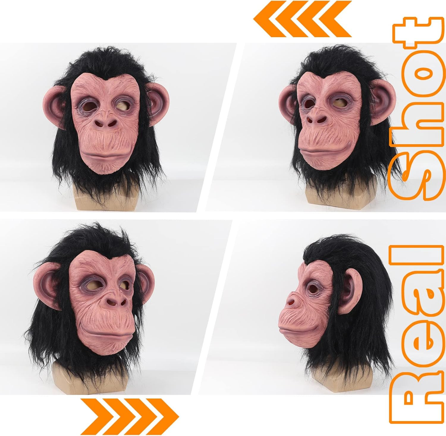 Monkey Mask Latex Full Head Animal Black Chimp Mask for Halloween Costume Party,