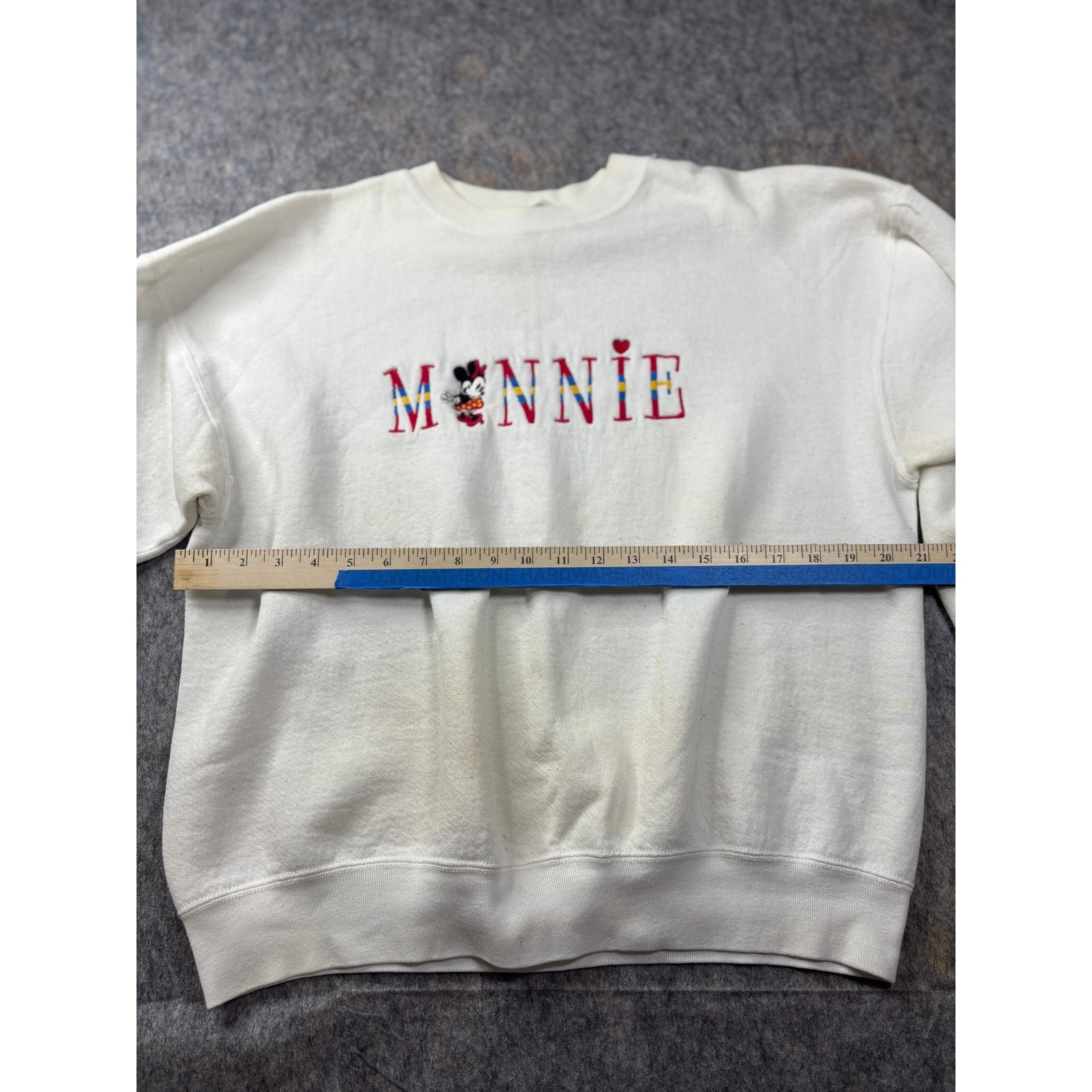 Disney Minnie Mouse Women's Vintage 90s Embroidered Sweatshirt Boxy White Sz XL