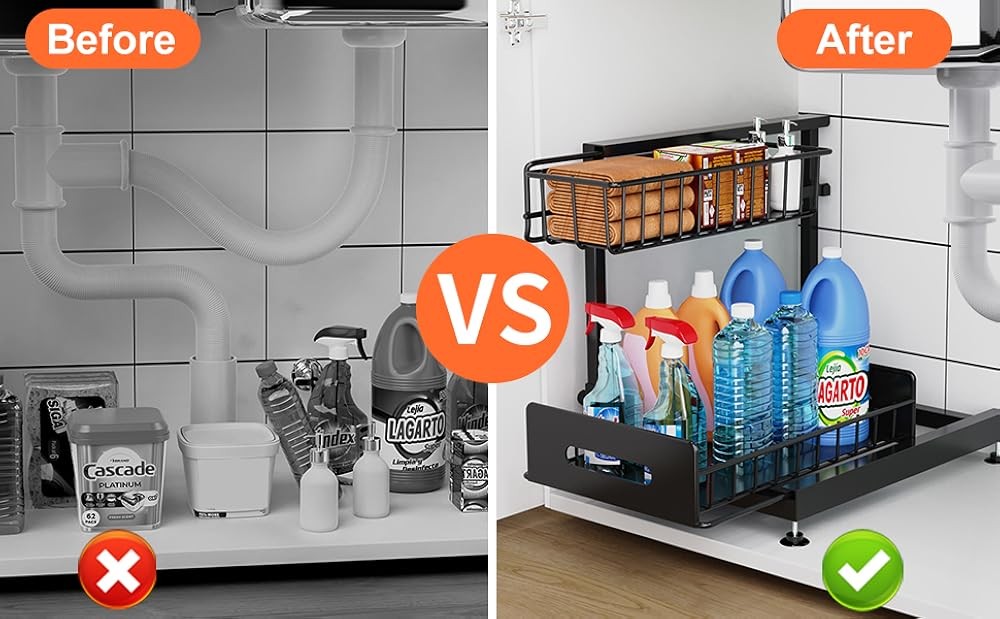 Under Sink Organizers and Stora, Pull Out Cabinet Organizer, 2-Tier