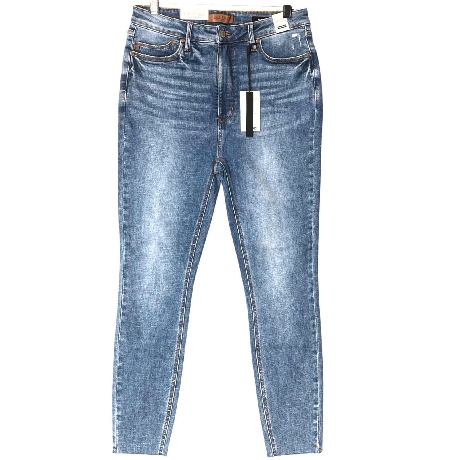 Judy Blue High Waist Skinny Fit Jeans Distressed Raw Hem Med Blue Size 13/31