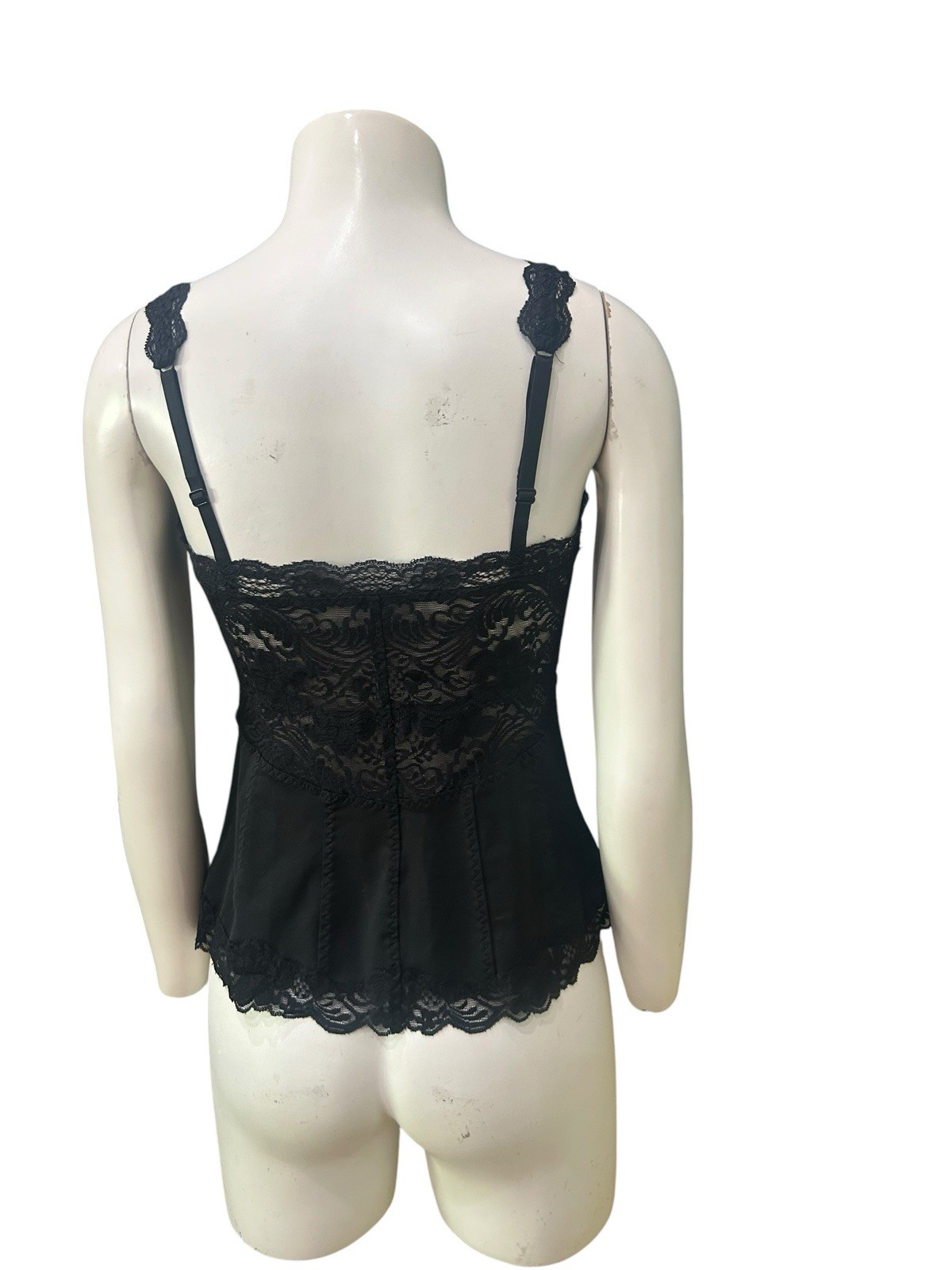 Frederick s Hollywood Black Lace Cami Corset Top Bustier Lingerie M