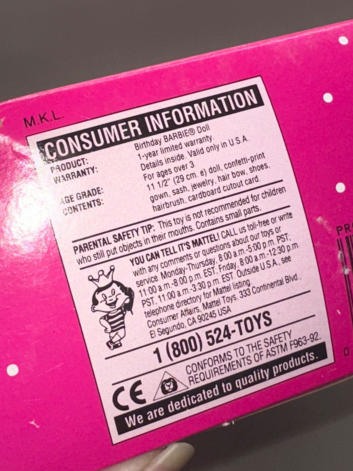 Vintage 1994 Mattel Birthday Barbie- African American 12955 NRFB