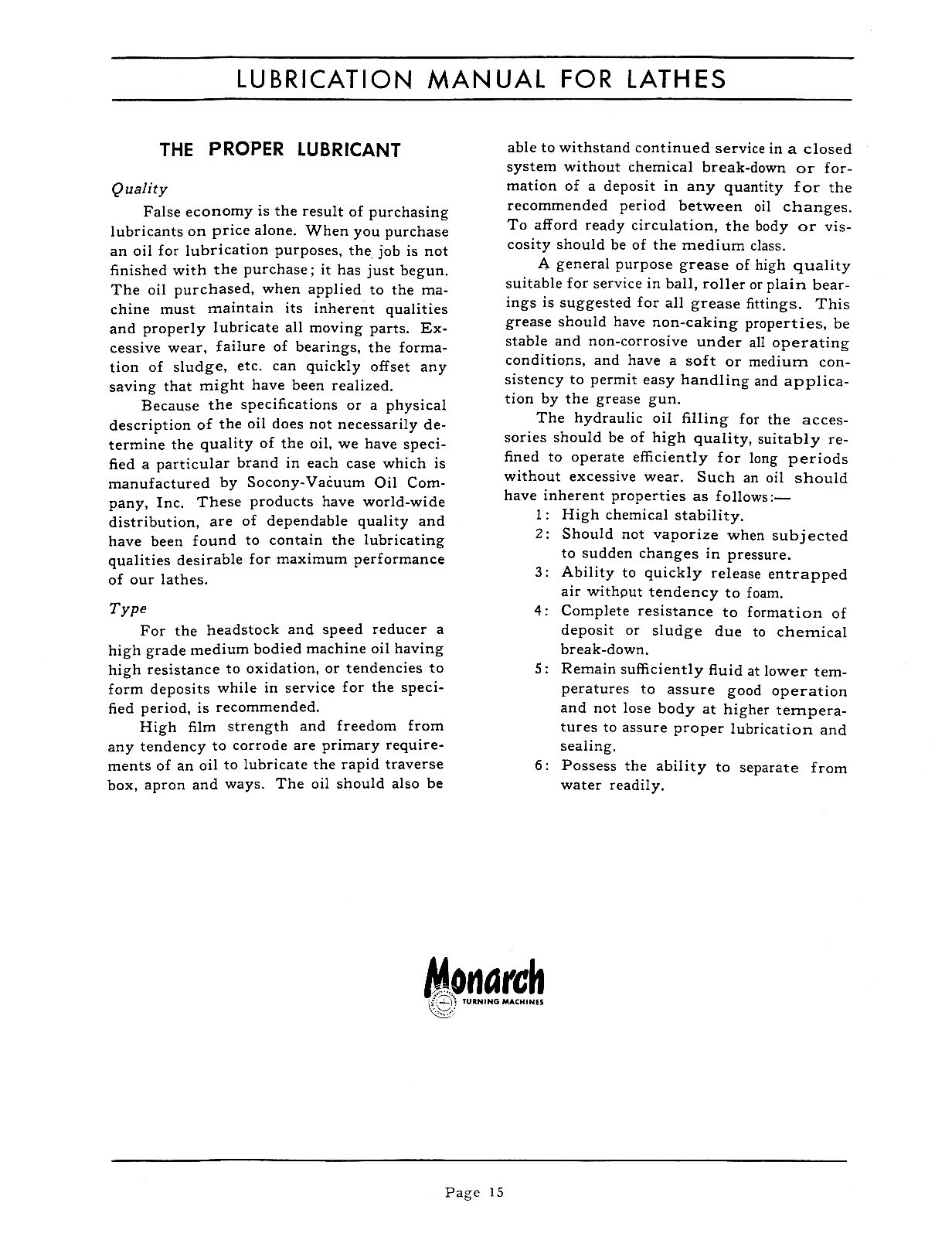 Monarch Lathe Lubrication Manual Models EE, M,N,NN, Series 60 100