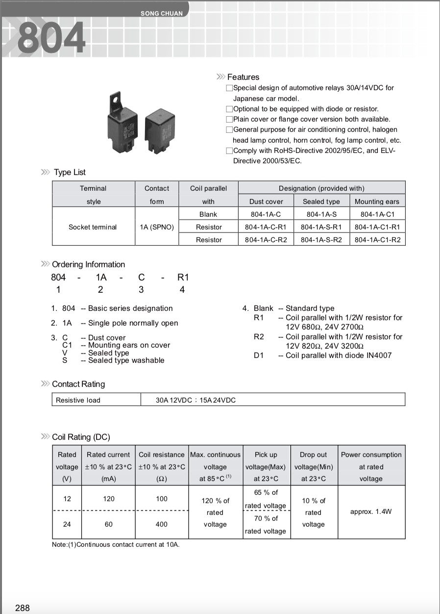 2 Song Chuan Power Relays Connectors 804-1A-C1 30A Coil 12VDC FREE US SHIPPING