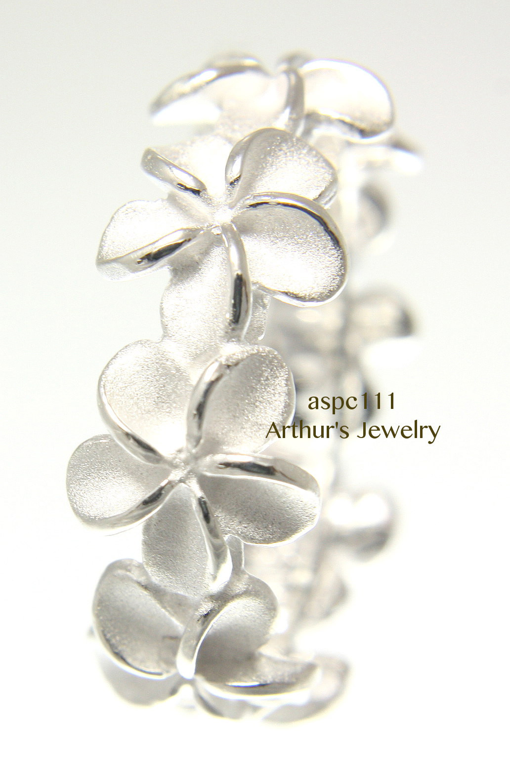 STERLING SILVER 925 HAWAIIAN 8MM PLUMERIA FLOWER LEI ETERNITY RING SIZE 3 - 10