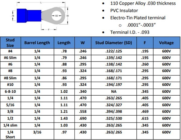 100 pcs BLUE 16-14 AWG WIRE RING TERMINALS 6 STUD EYE ELECTRICAL CONNECTORS USA