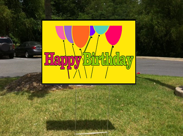 Happy Birthday Yellow Corrugated Plastic Yard Sign /FREE Stakes