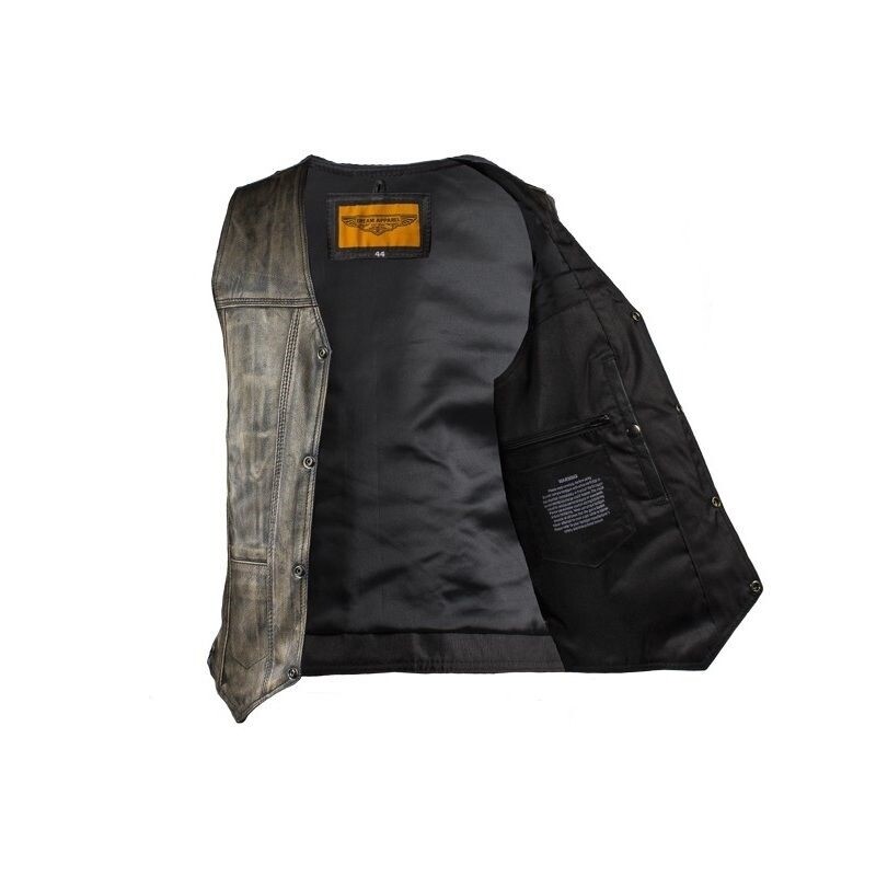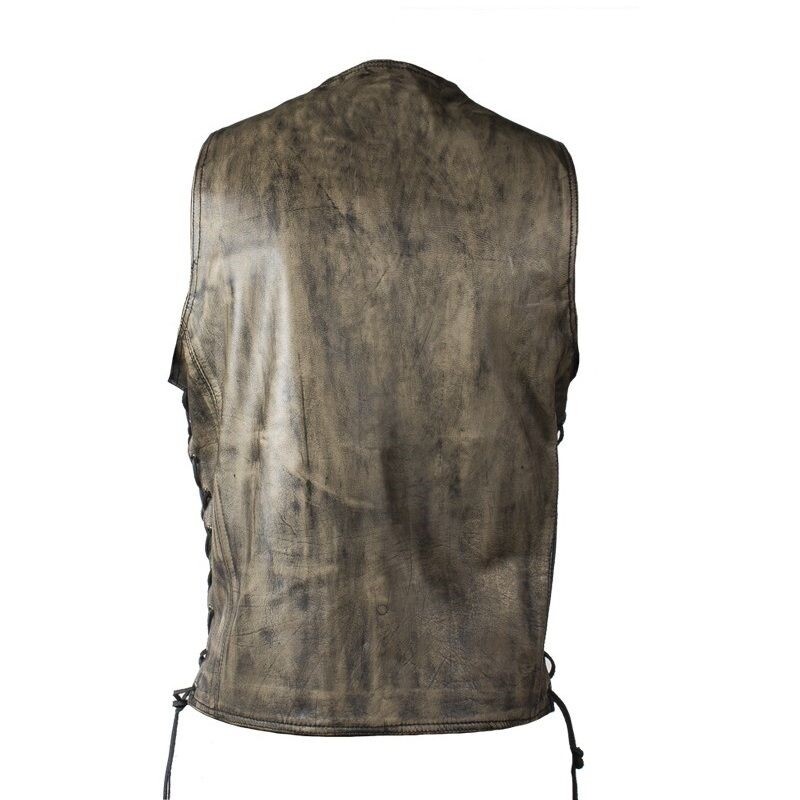 MENS MOTORCYCLE DISTRESSED BROWN LEATHER VEST w/ DUAL CONCEAL GUN POCKETS - DA73
